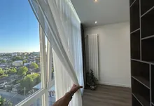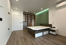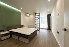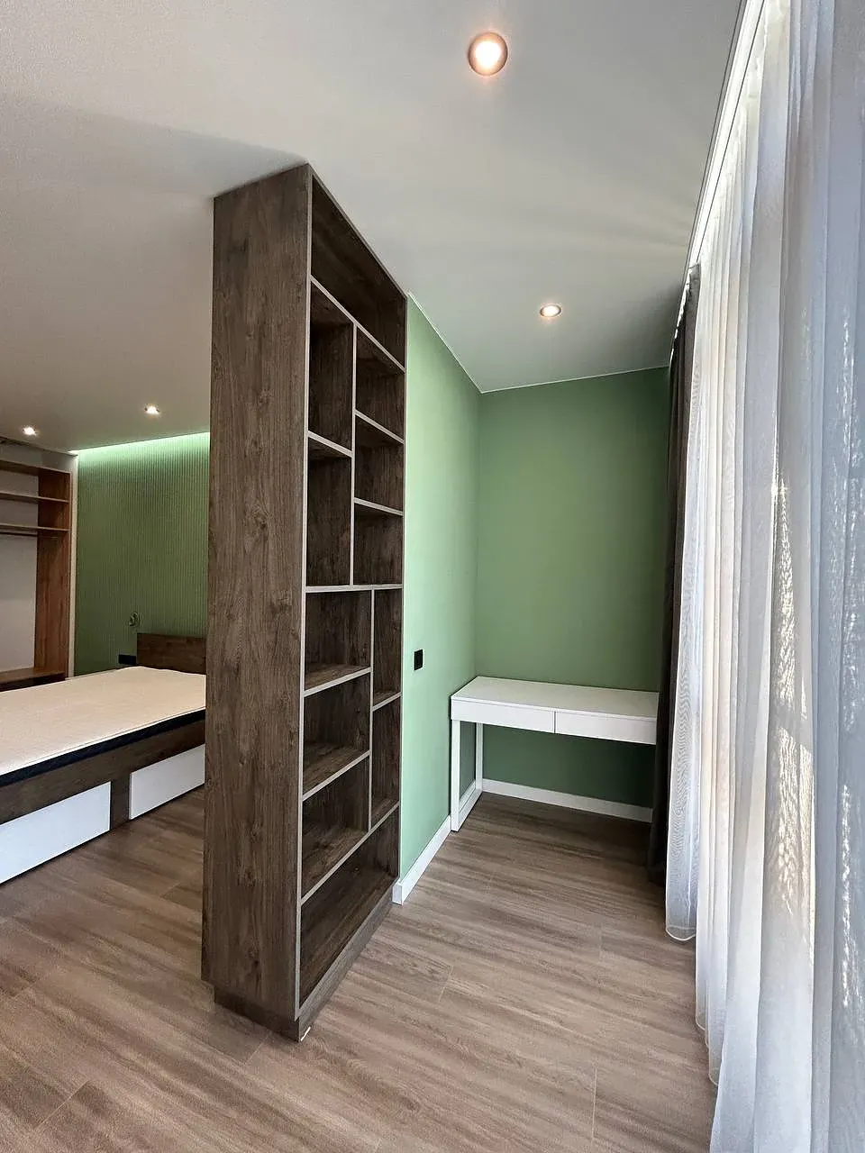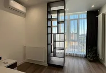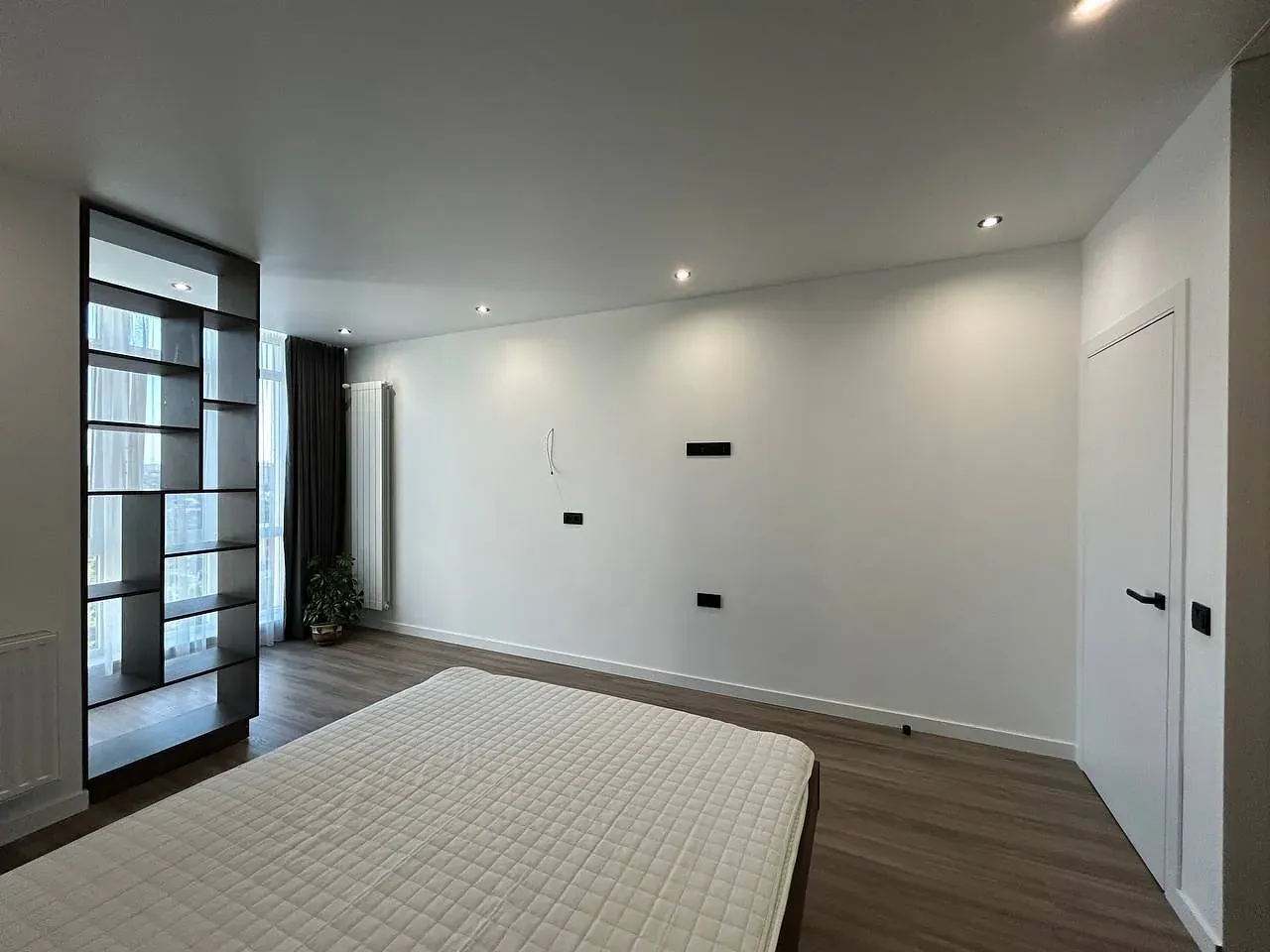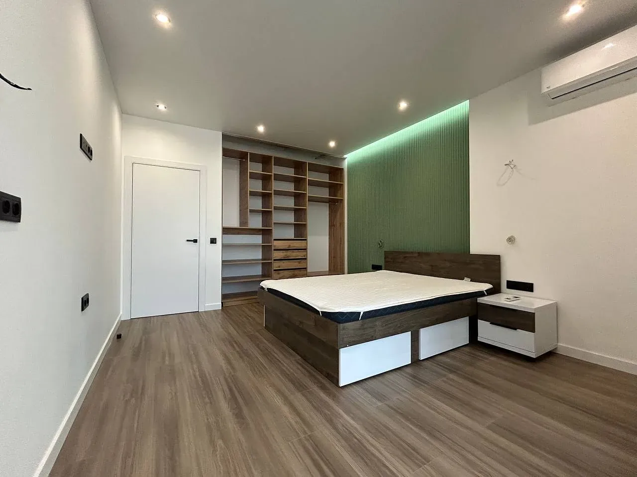 • у спальні є все необхідне для проживання: двоспальне ліжко, кондиціонер, велика шафа для речей, робоча зона та велике панорамне вікно з видом на захід сонця та місто
