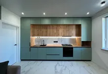 • простора кухня площею 17 м², укомплектована технікою (холодильник, посудомийна машина, духова шафа, газова плита, витяжка)
