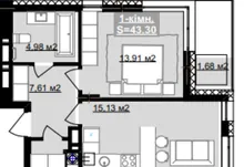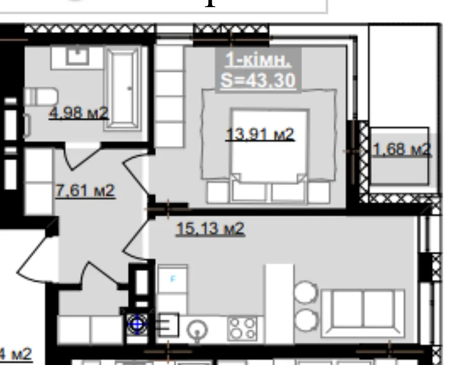 Квартира видова чудове планування з двох зонною, великою кухнею-студією, окремою спальнею, відкритим балконом та гардеробом