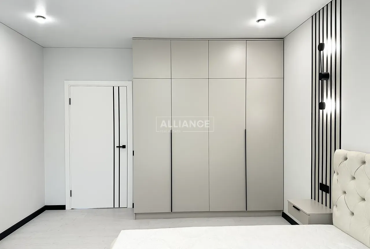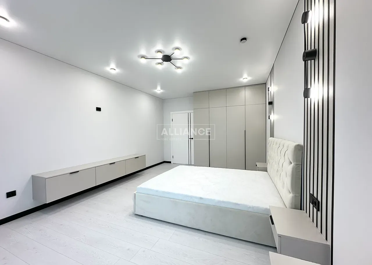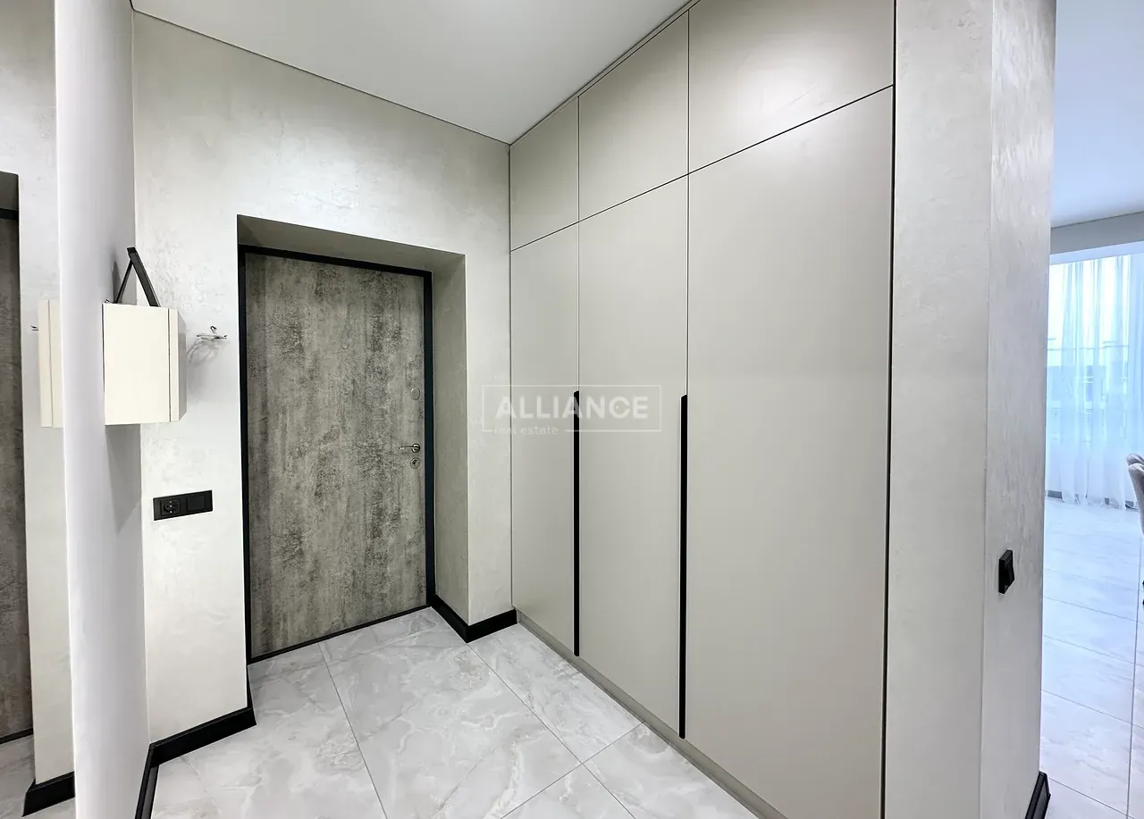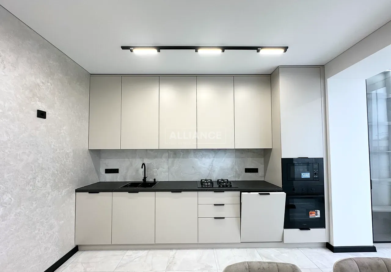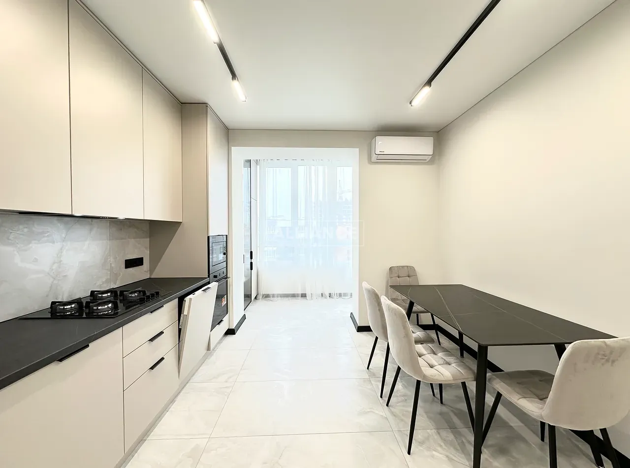 Квартира повністю укомплектована меблями та технікою. Вмонтований кондиціонер, який працює на обігрів та охолодження. На кухні встановлена велика посудомийна машинка. Спальні кімнати укомплектовані необхідними меблями. Є бʼюті зона.