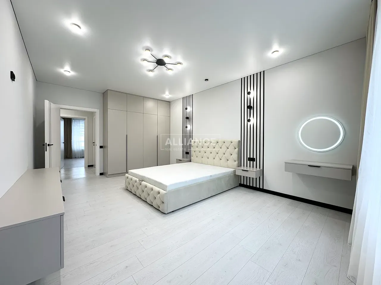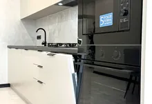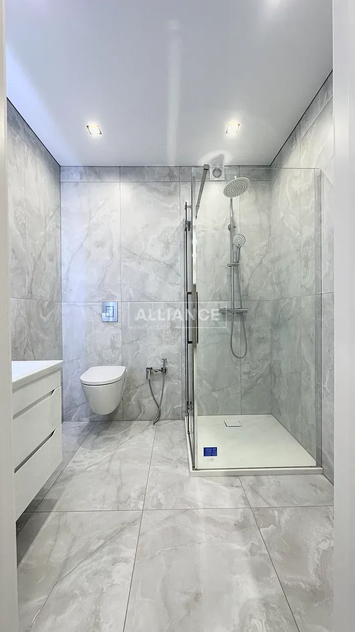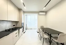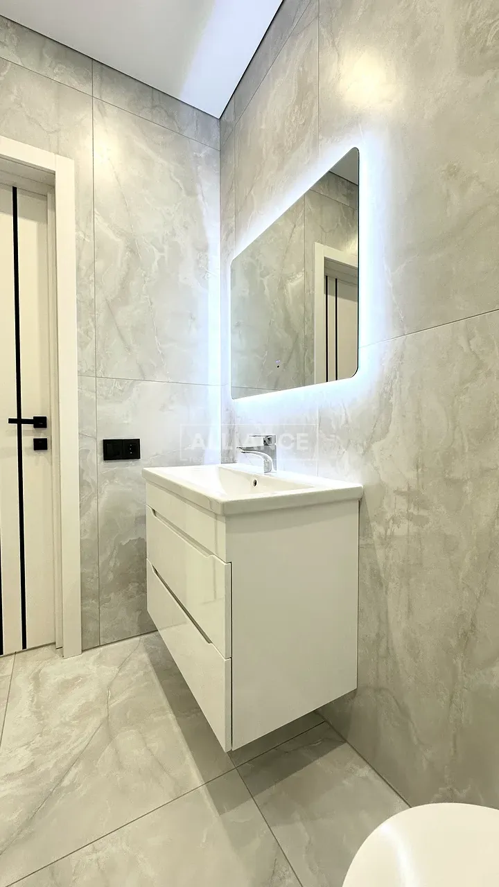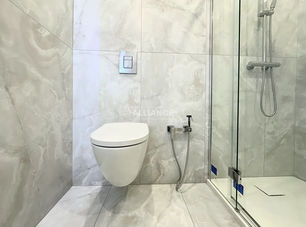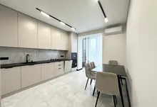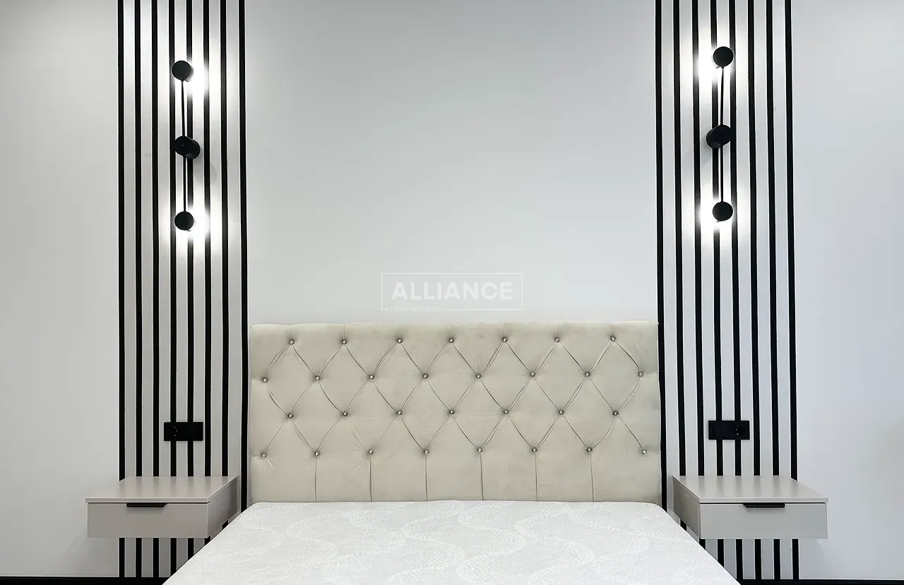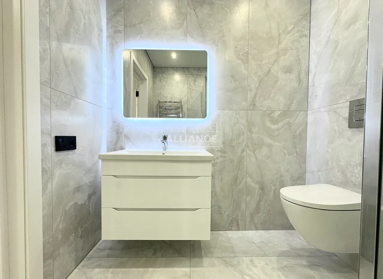 Квартира повністю укомплектована меблями та технікою. Вмонтований кондиціонер, який працює на обігрів та охолодження. На кухні встановлена велика посудомийна машинка. Спальні кімнати укомплектовані необхідними меблями. Є бʼюті зона.