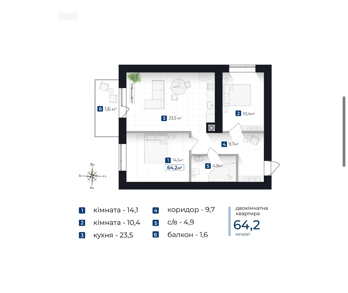 2к квартира в ЖК Містечко південне