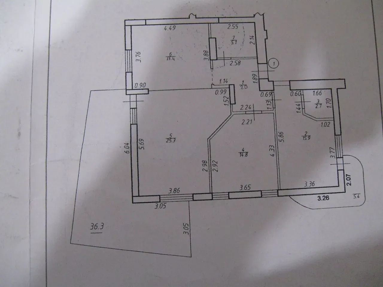 Характеристика: загальна площа – 100,7 кв.м, житлова площа – 56 кв.м (кімнати – 15,9/ 14,8/ 25,3), кухня – 17,4 кв.м , ванна – 5,1 кв.м, душова – 2,7 кв.м, тераса – 36,3 кв.м, балкон – 5,4 кв.м.
