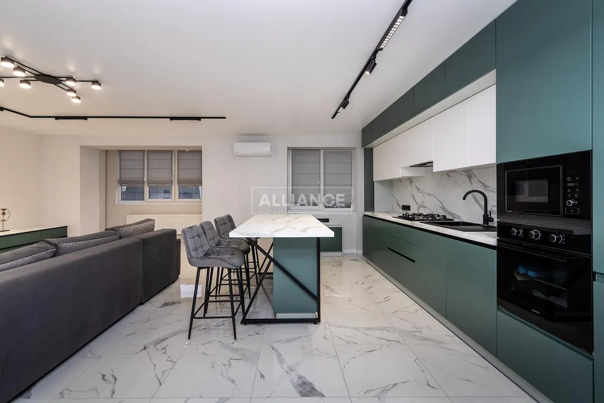 У квартирі роздільне планування: 2 спальні кімната та простора кухня студія з вбудованими якісними меблями і технікою.
