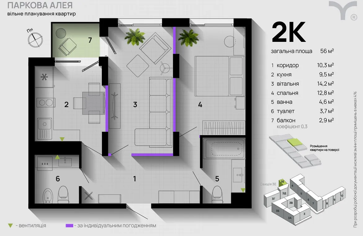 ЖК “Паркова алея” — це тиха й зелена локація з усією необхідною інфраструктурою: магазини, дитячі майданчики, школи, зручний транспорт.