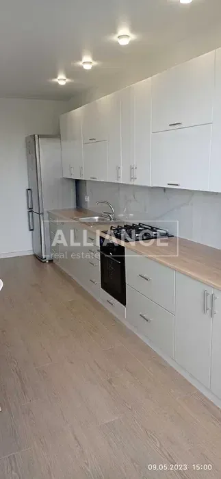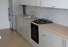 • кухня обладнана шафами для посуду та кухонною технікою: духова шафа, варочна поверхня, витяжка, мікрохвильова піч, посудомийна машина, холодильник;