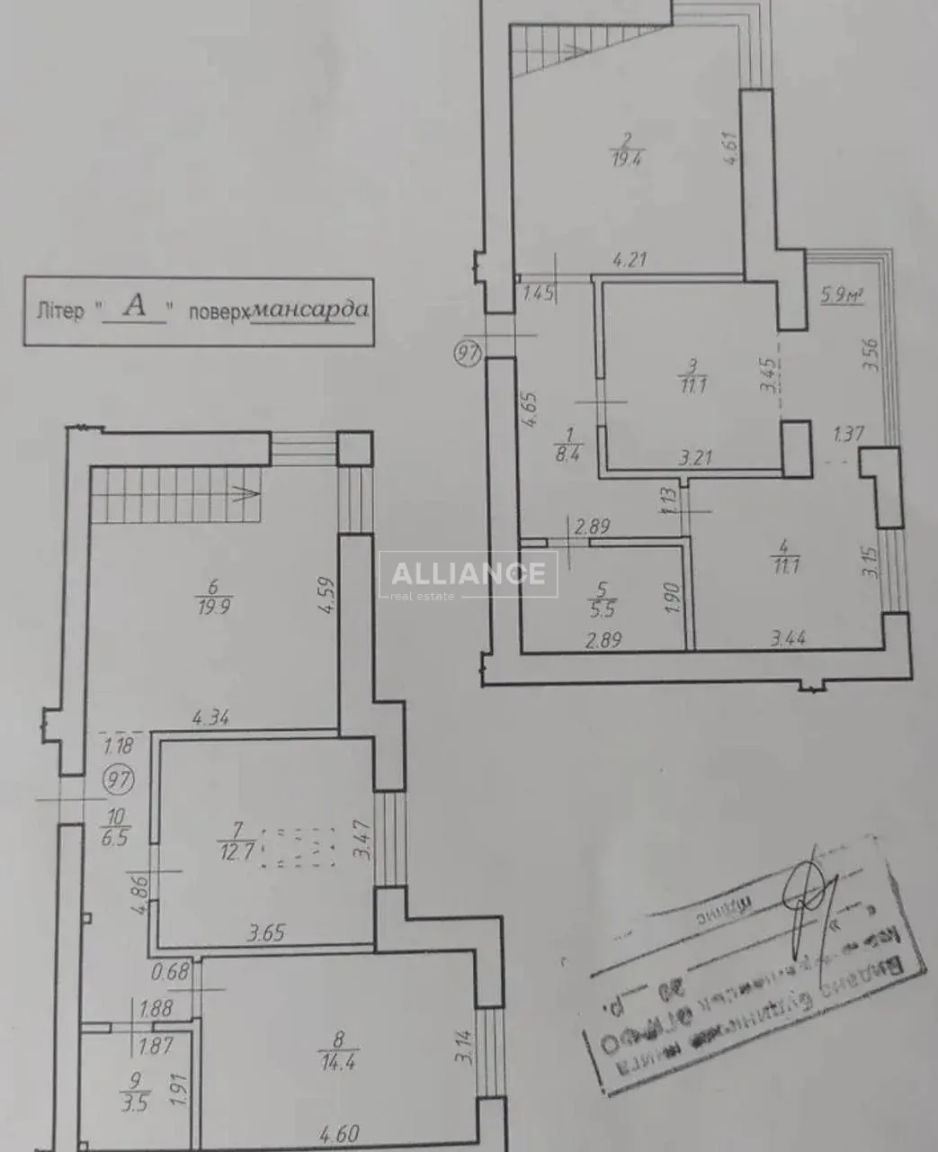 - 5 кімнат та кухня, дві ванни кімнати та горище.