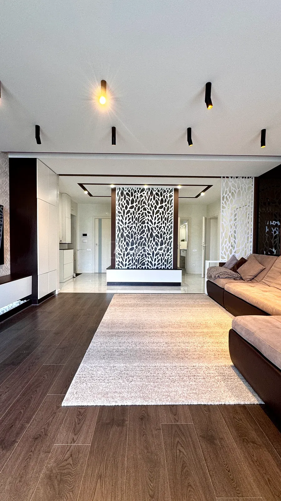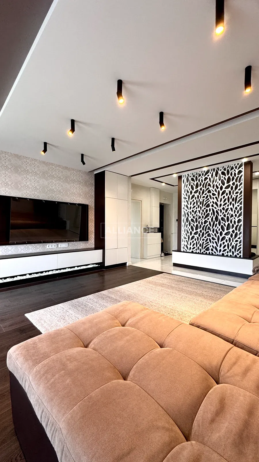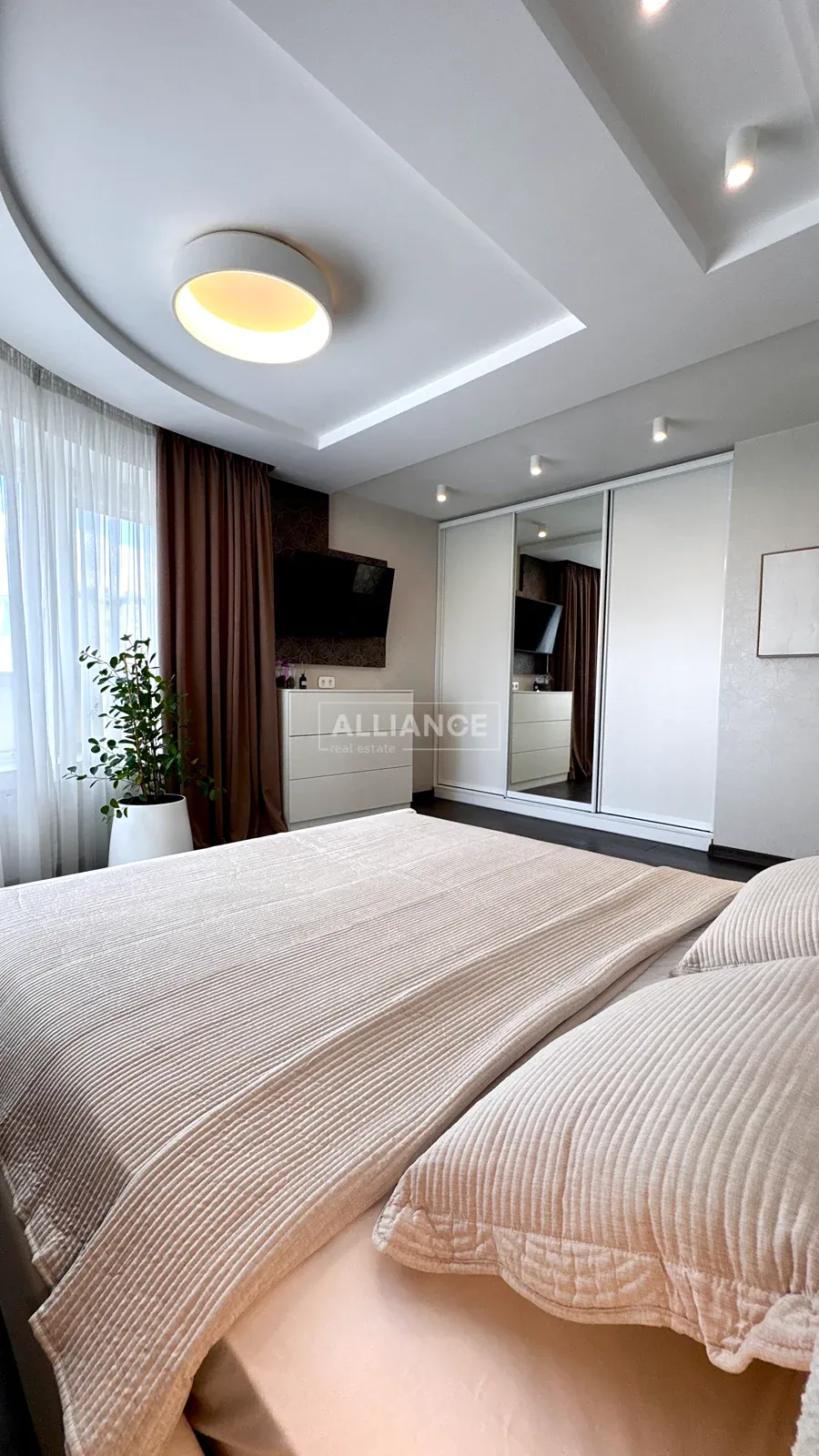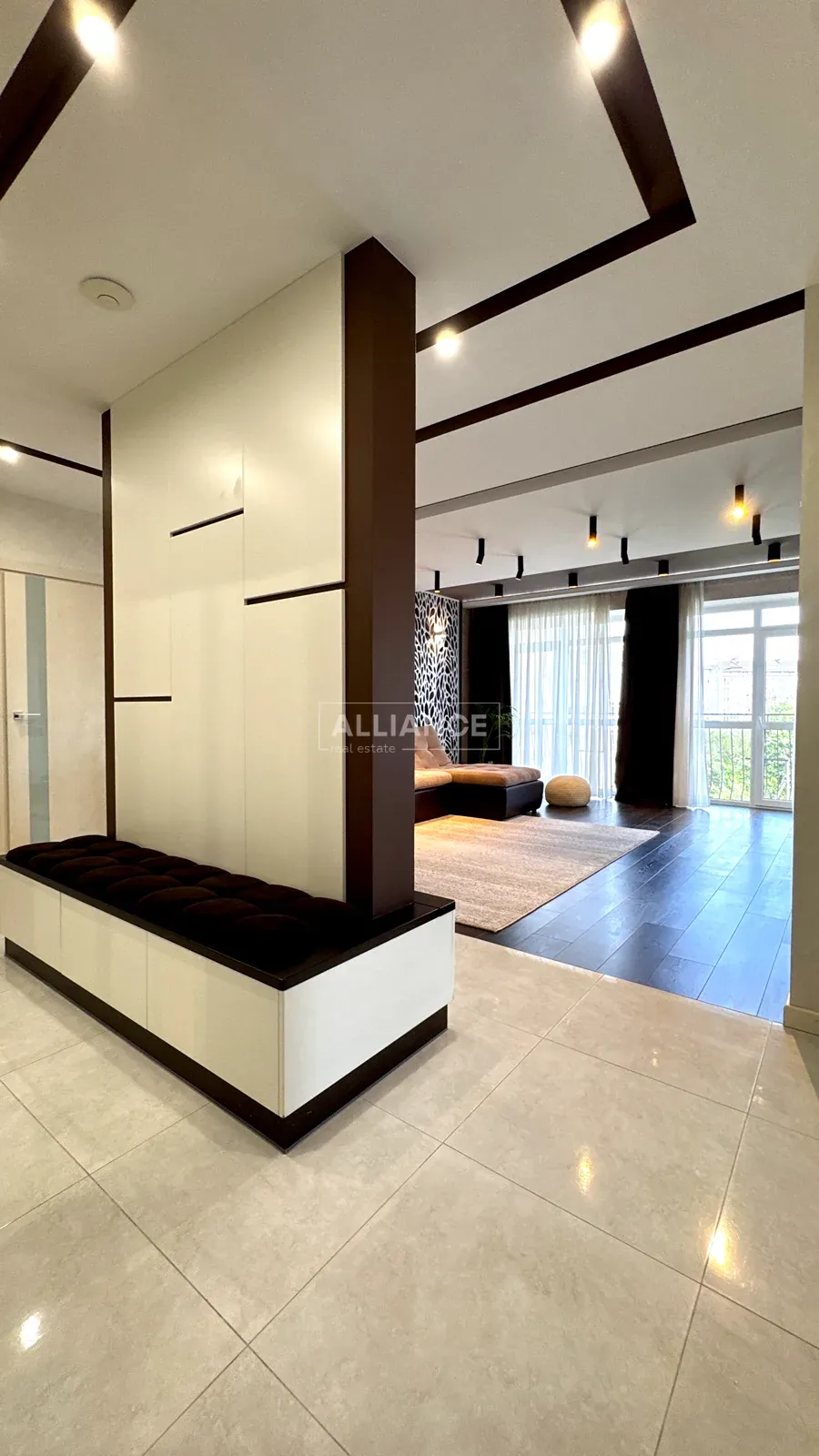 Квартира повністю укомплектована якісними меблями та сучасною технікою — готова до проживання без жодних додаткових вкладень. Інтерʼєр виконаний у стриманому сучасному стилі, що поєднує комфорт і функціональність.