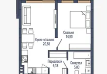 1-кімнатна з можливістю перепланування в 2-кімнатну