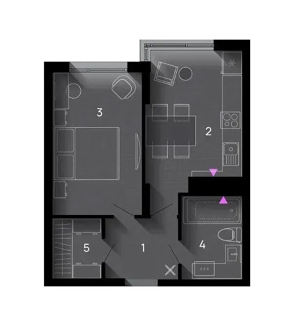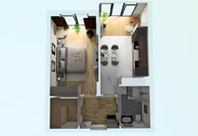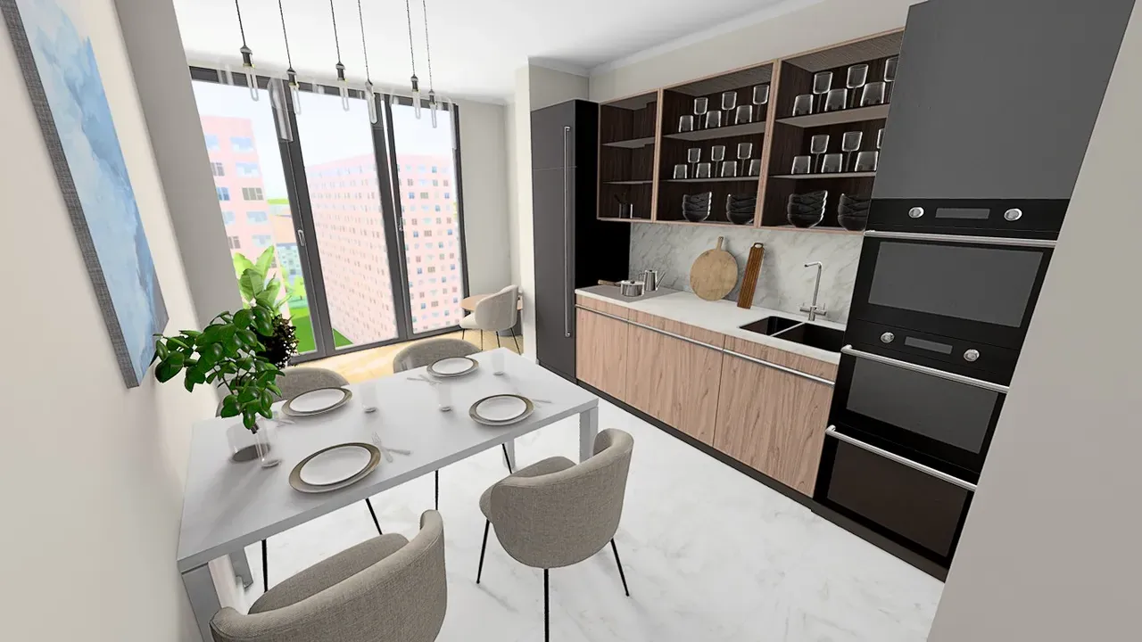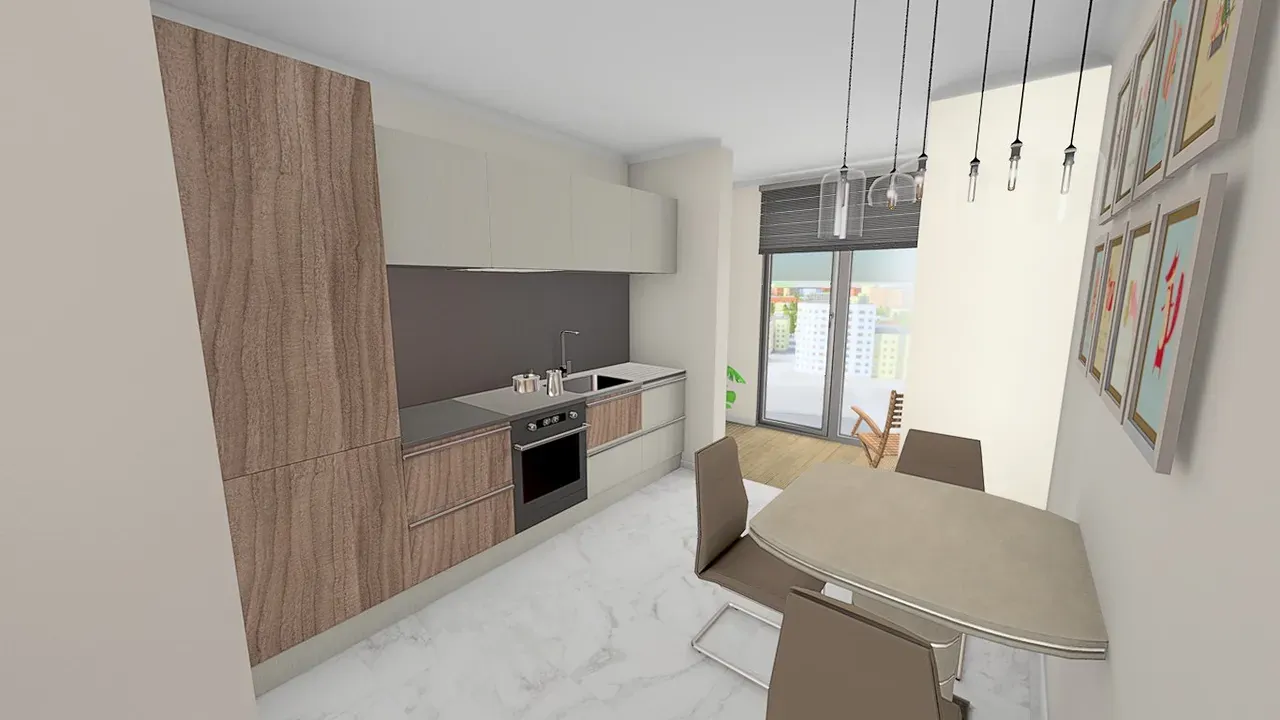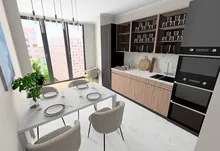 Квартра має функціональгне планування, з просторою кухнею, великим санвузлом та гардеробною кімнатою.