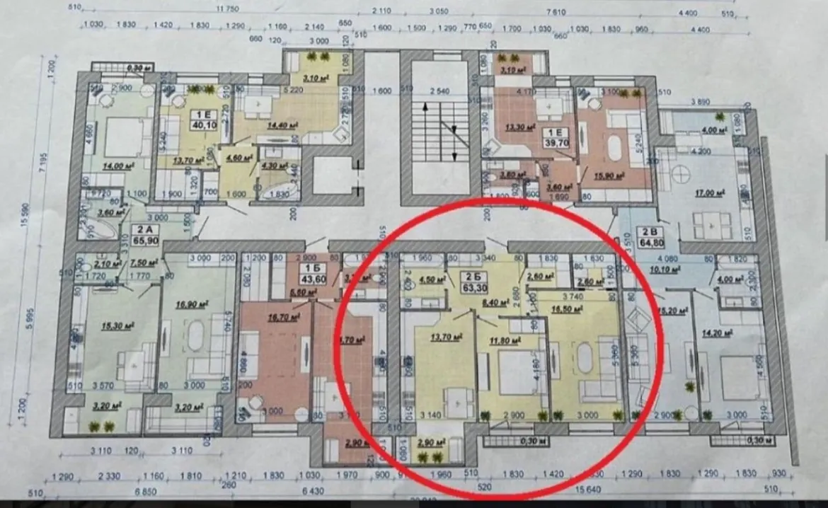 Квартира одностороння, розташована на видовому поверсі, загальна площа 63.3 м.кв.