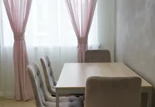 У кухні наявний обідній стіл із стільцями, у спальні встановлене велике двоспальне ліжко.