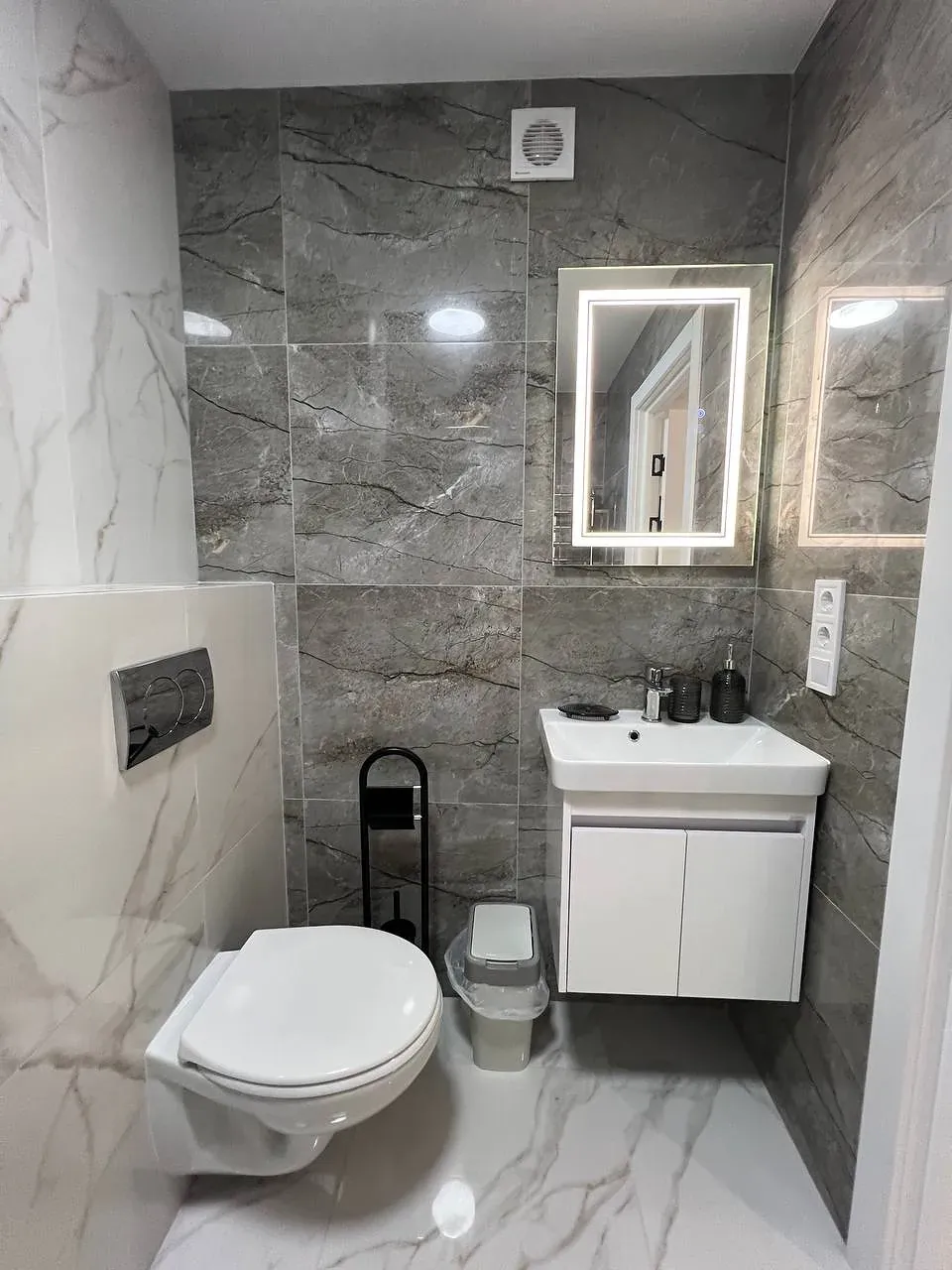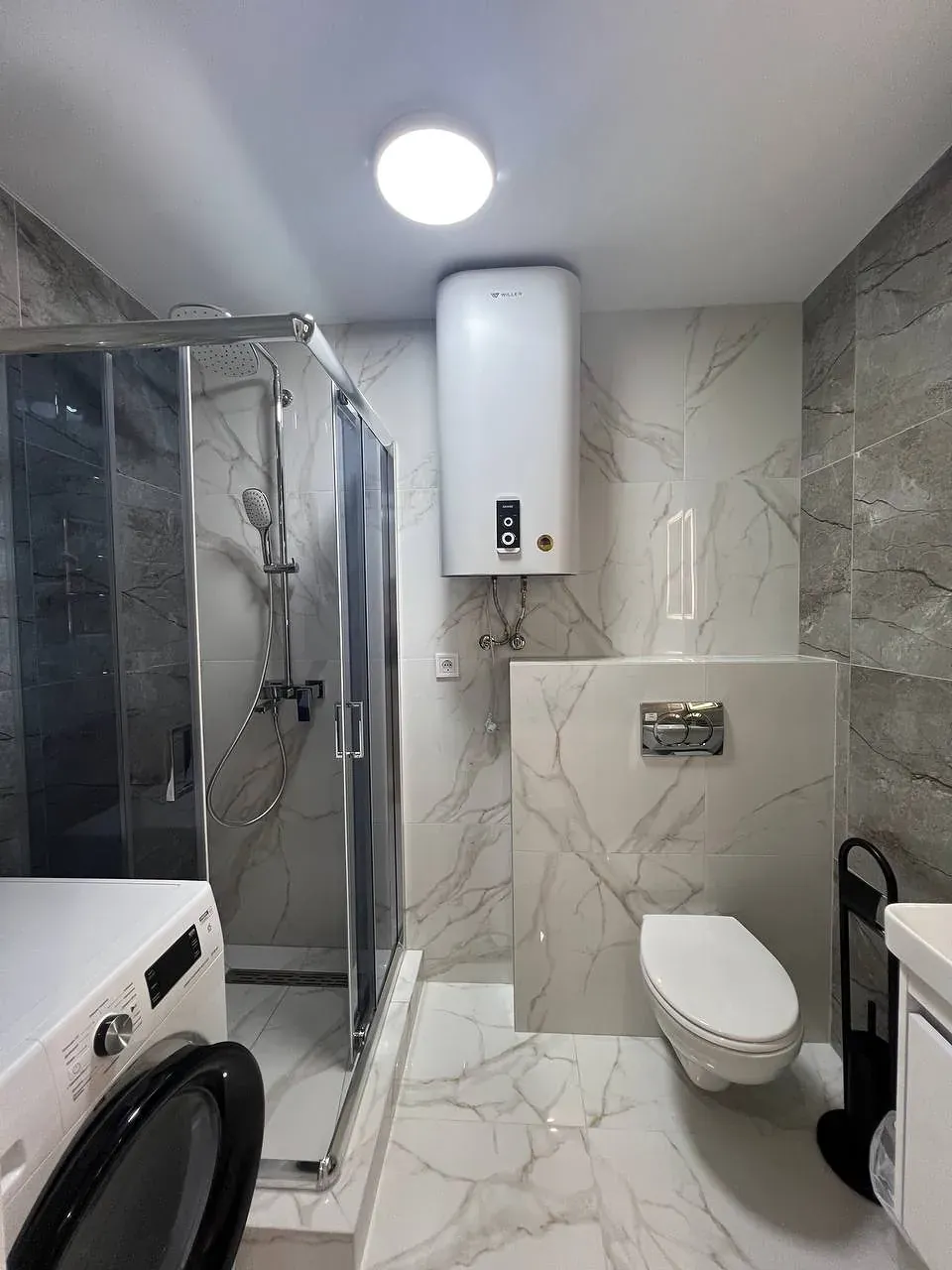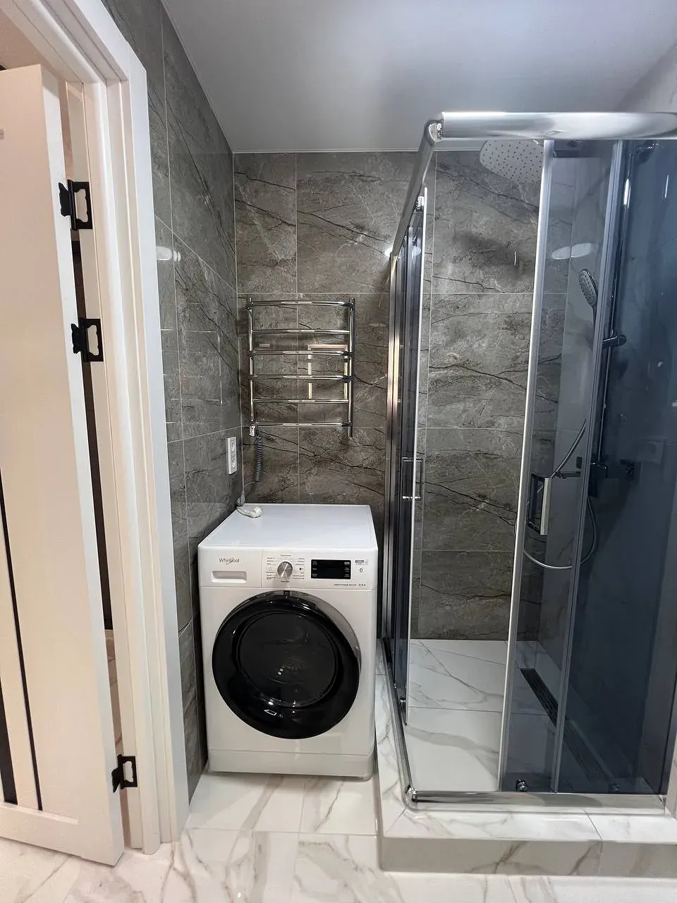 У ванній кімнаті: душова кабіна, прально-сушильна машина (був перший запуск, готова до використання), рушникосушка, бойлер.