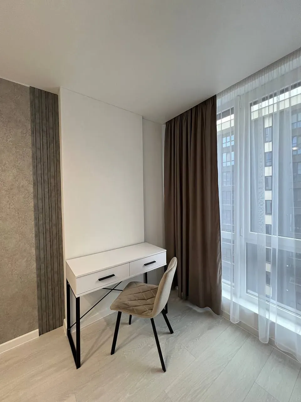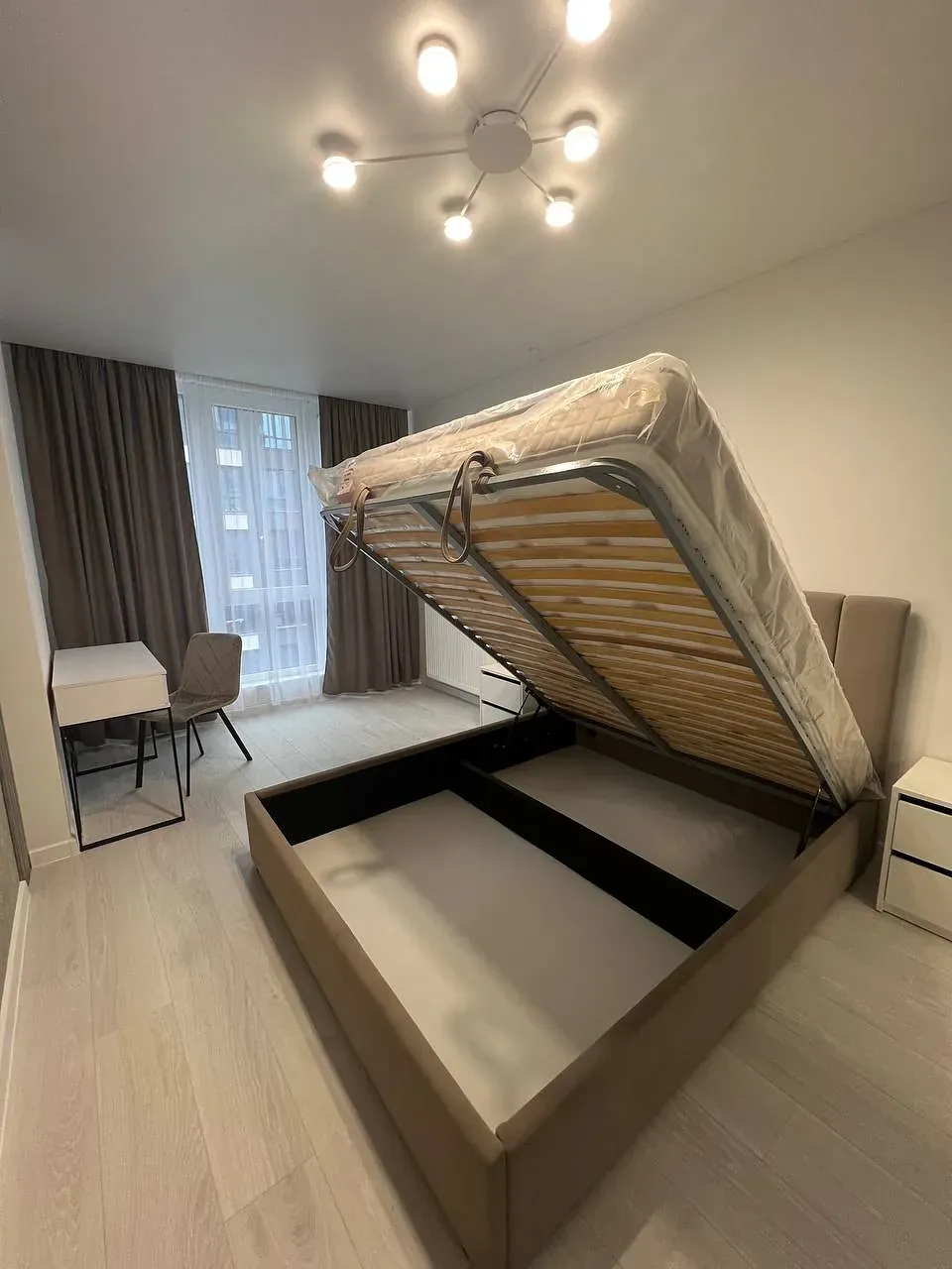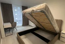 У кімнаті: ліжко з ортопедичним матрасом, з підйомним механізмом (додаткове місце для зберігання), шафа, 2 тумби, косметично-робоча зона зі столиком та кріслом.