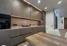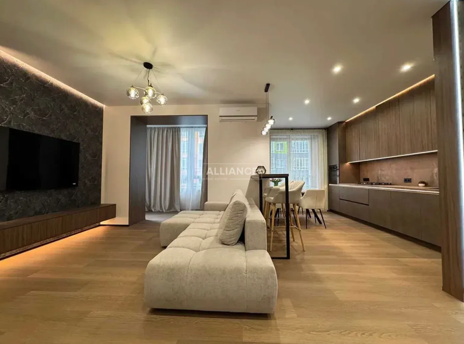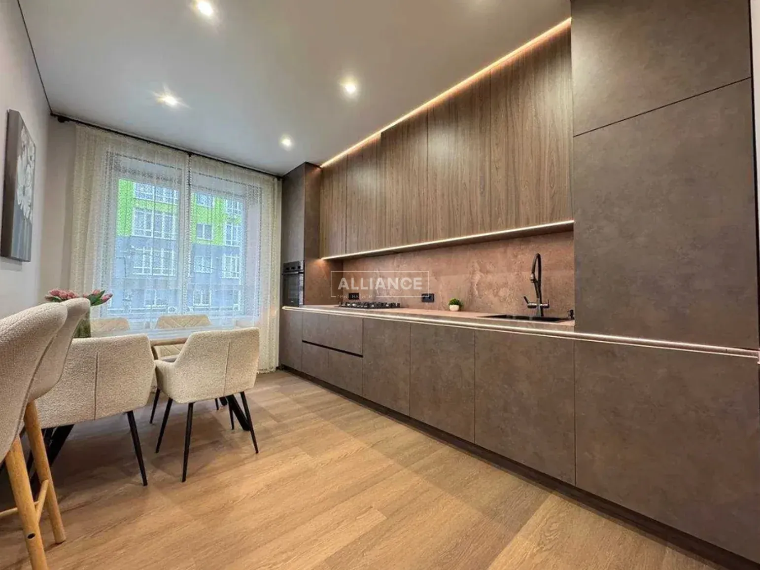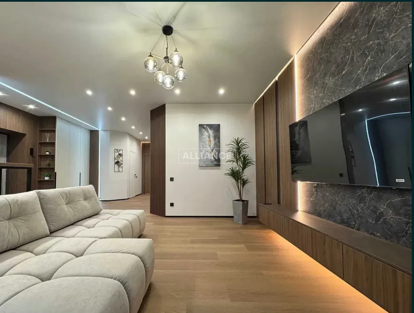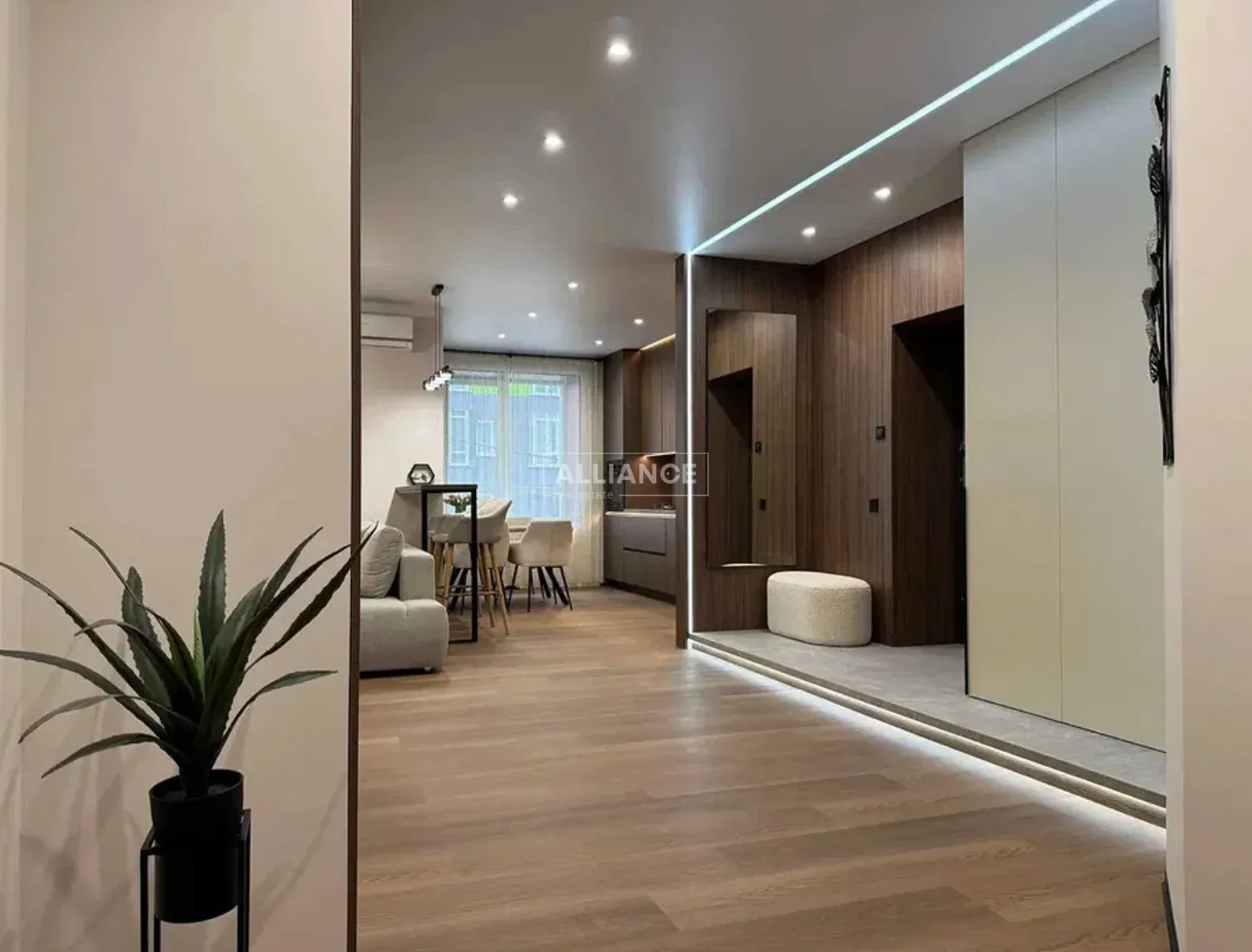 По всій квартирі встановлено підігрів підлоги. На підлозі сучасний та якісний кварц-вініл, на стінах сучасна декоративна штукатурка та панелі з підсвіткою.