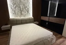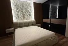 Спальна кімната з ліжком та матрасом розміром 1.6м, бюті зона має дзеркало з підсвіткою.