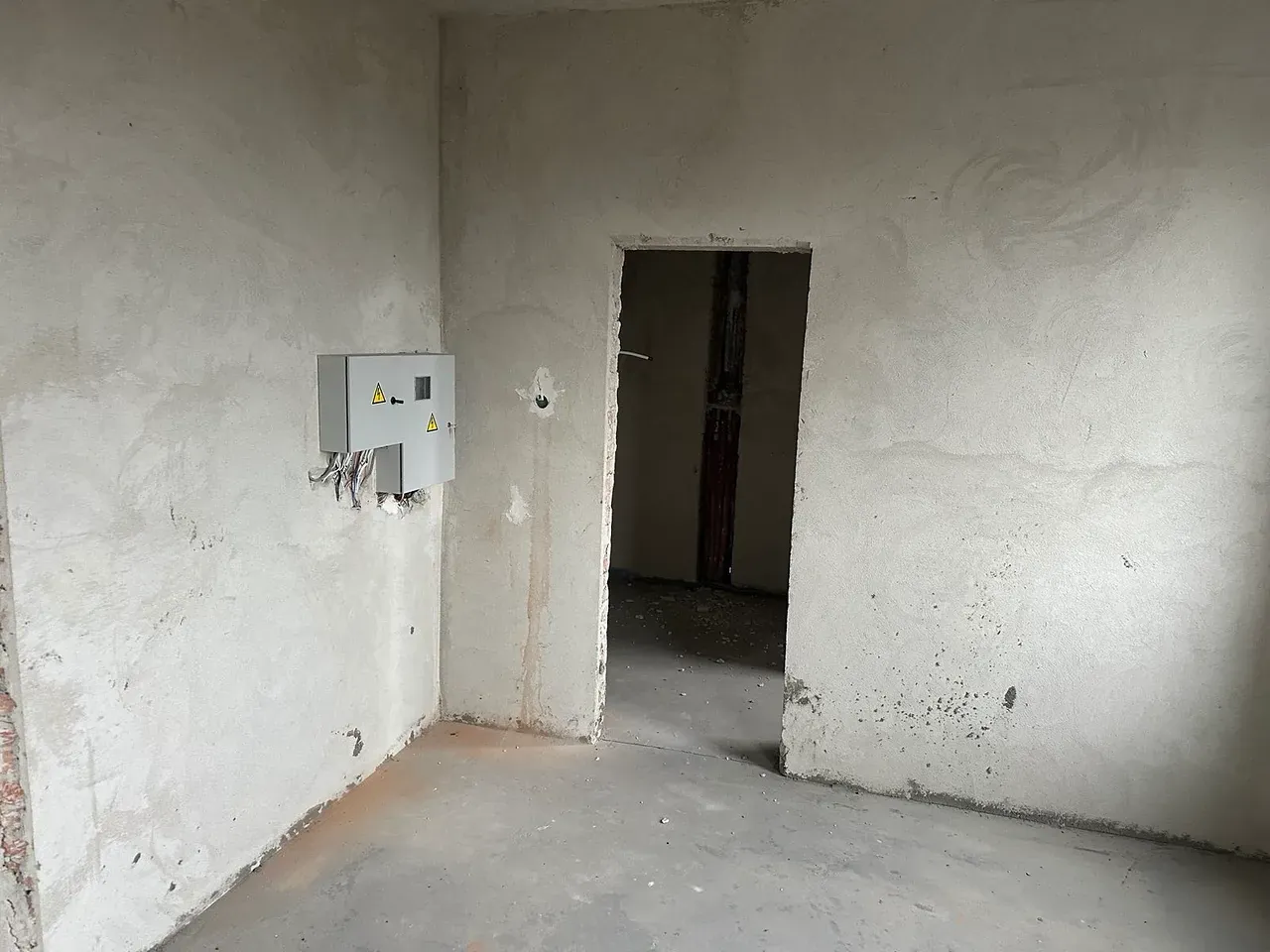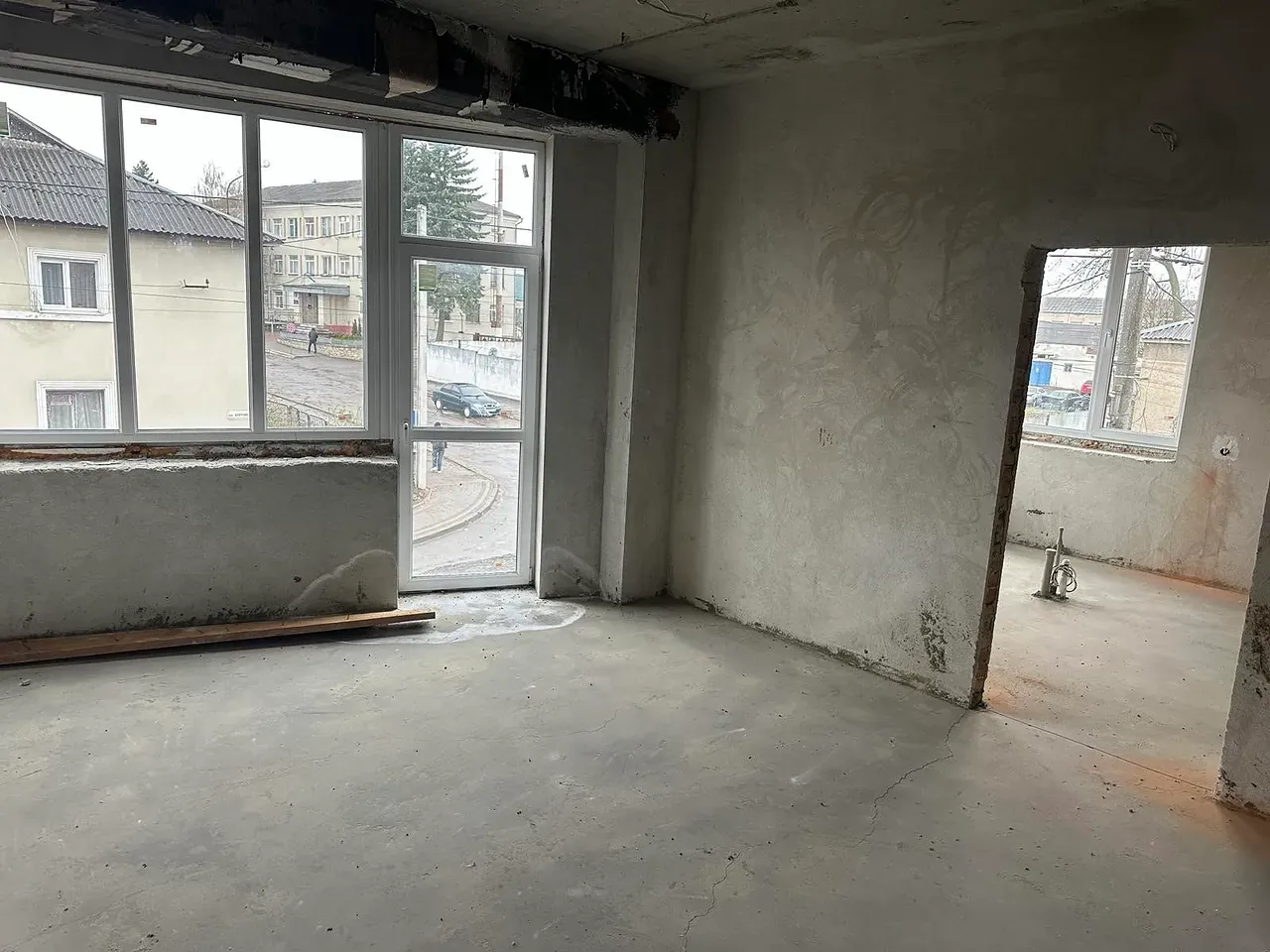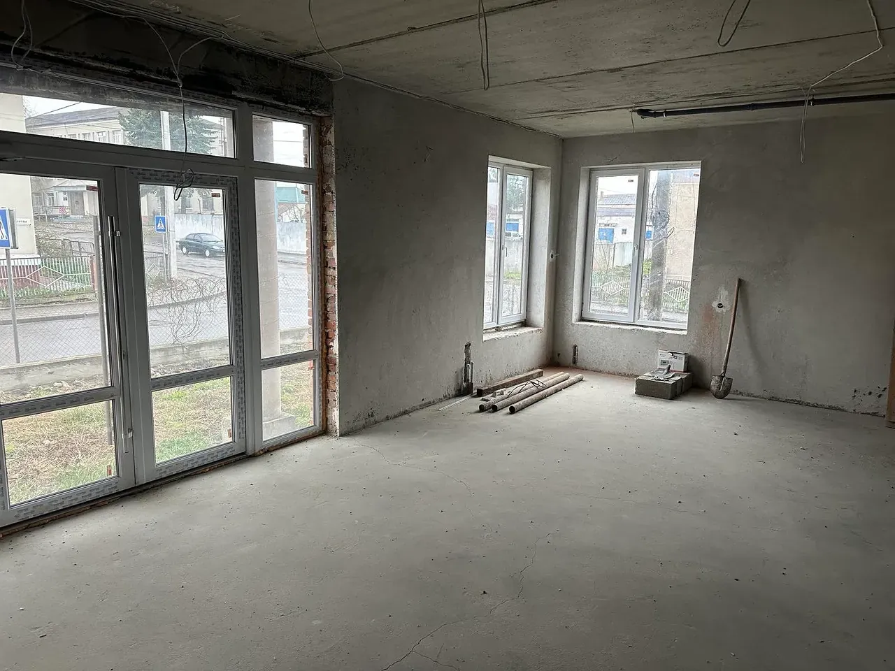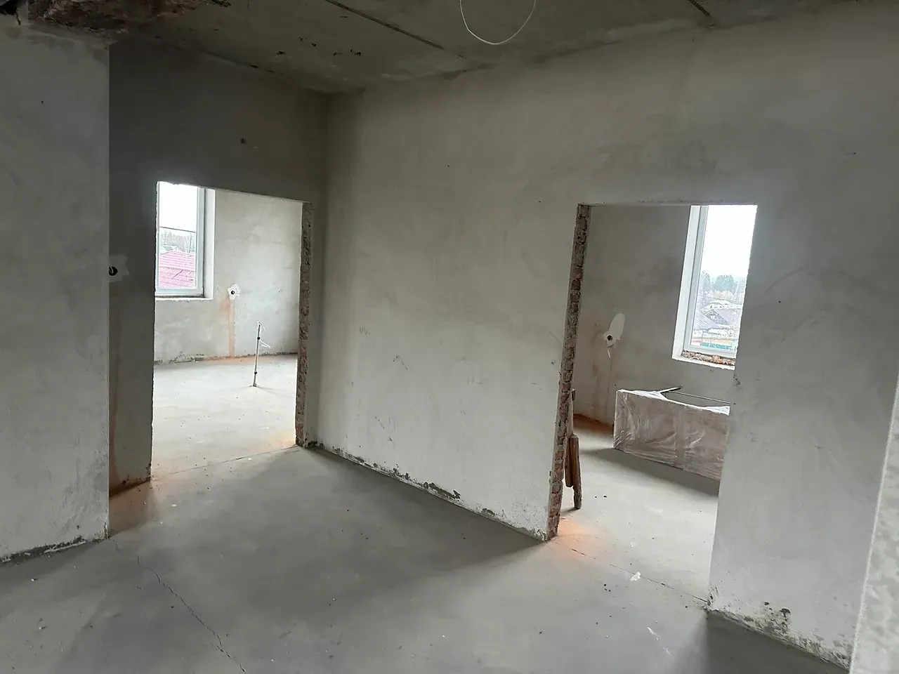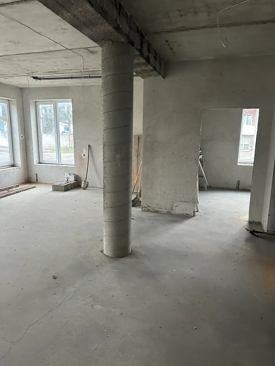 На підлозі напівсуха шліфована чистова стяжка.