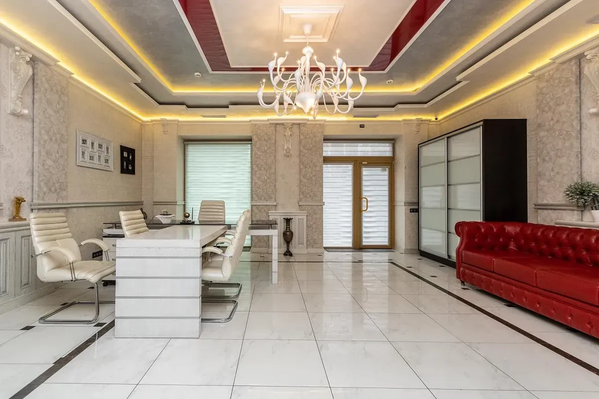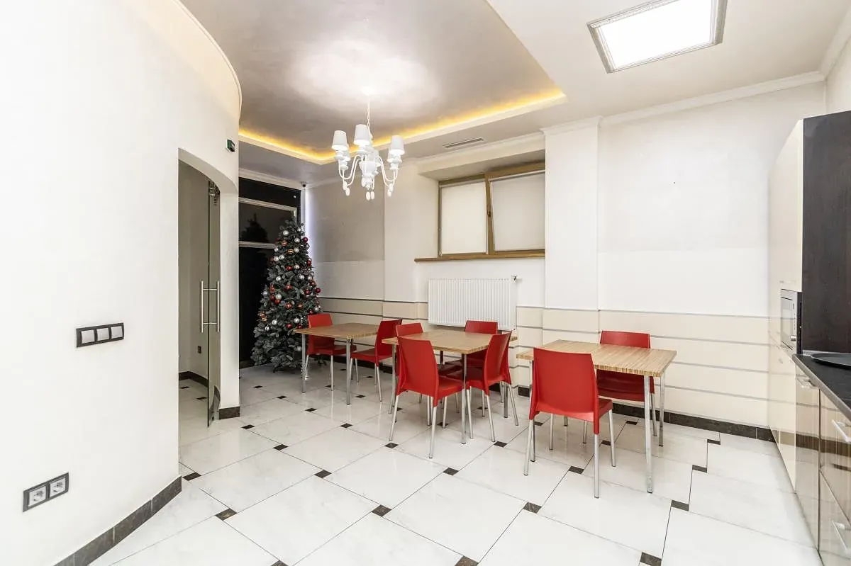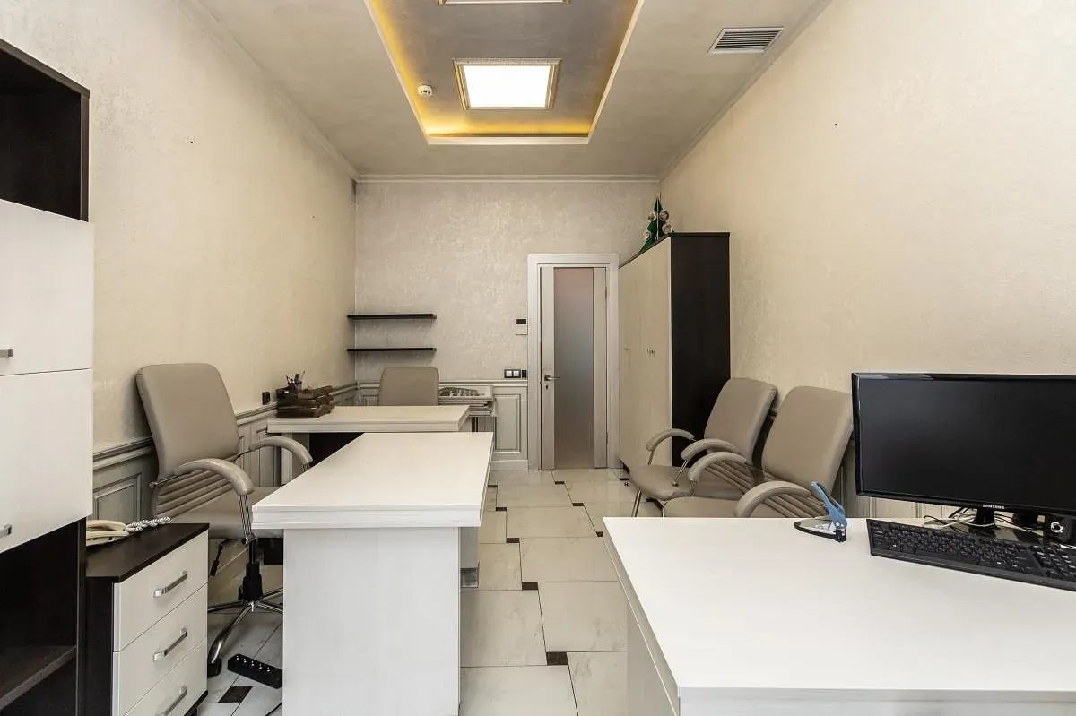 Це приміщення відрізняється не тільки стильним інтерʼєром, а й продуманим плануванням, що дозволяє максимально ефективно організувати робочий процес. Завдяки великій кількості приміщень, приміщення дуже затишне, створюючи комфортні умови для роботи.