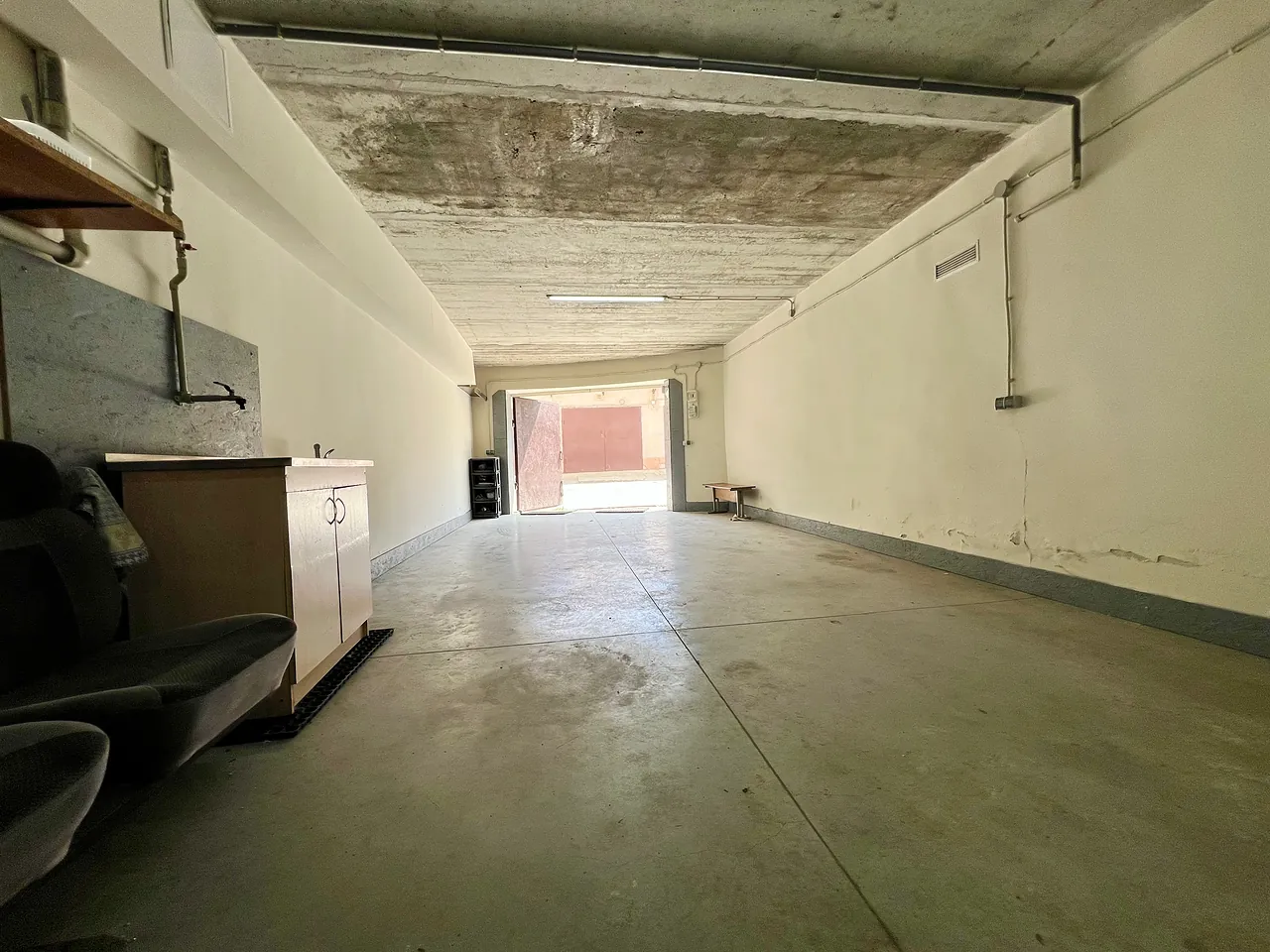 В гаражі є ремонт, залита шліфована підлога, вода, мийка, стелажі.