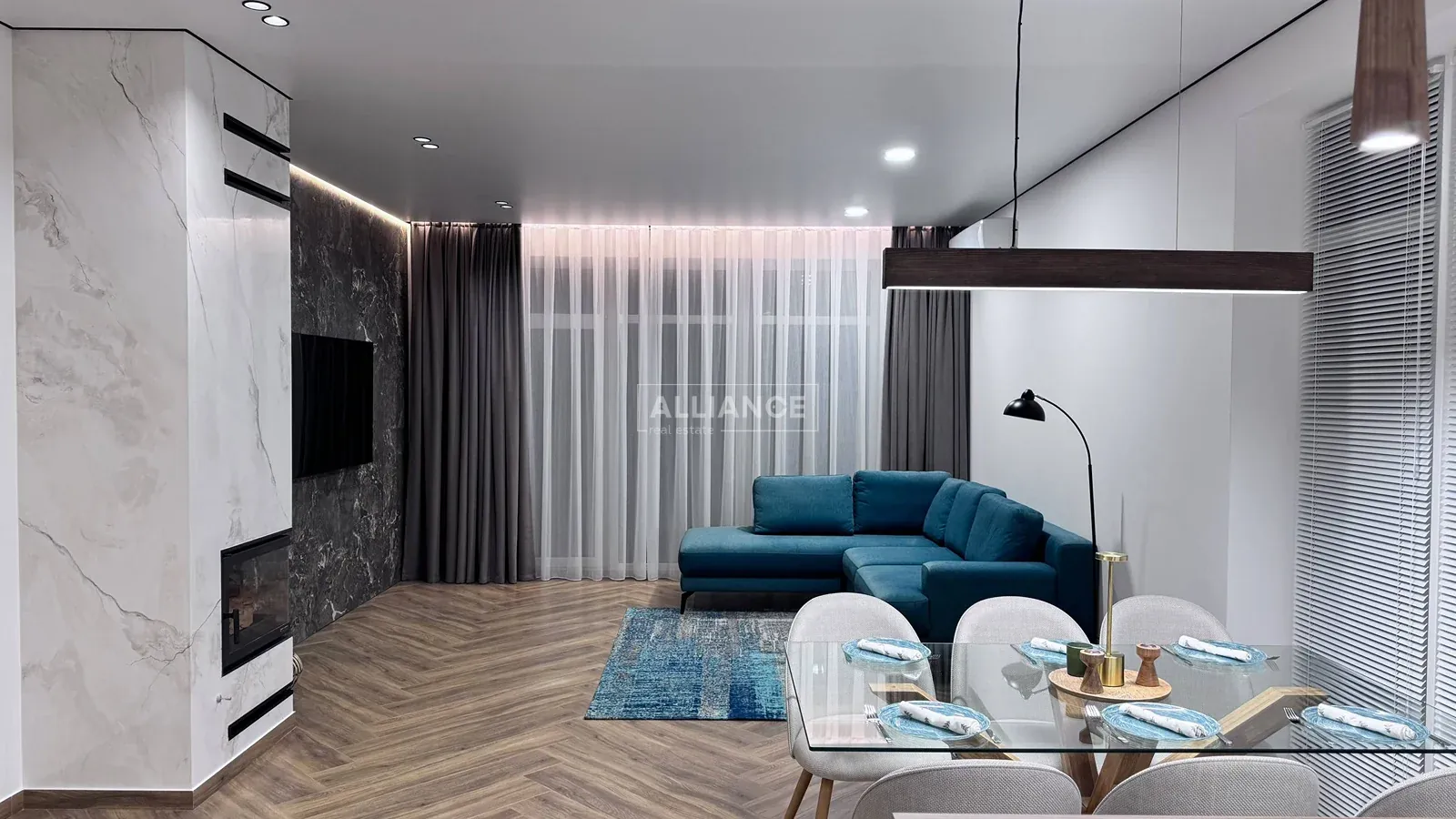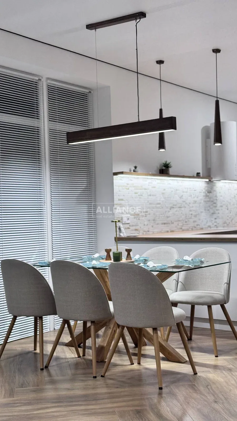* на першому поверсі, велика кухня-вітальня., де кухонна робоча зона повністю облаштована меблями з мальованими фасадами з МДФ та якісною фурнітурою, а також уся необхідна побутова техніка (холодильник, варильна поверхня, духова шафа, мікрохвильова піч, витяжна система, посудомийна машина) Родзинкою кухні є прихована КОМОРА , яку переконаний оцінить господині, так як там можна буде зберігати дуже багато чого, від домашньої консервації до свіжих овочей та фруктів. Поруч з робочою зоною кухні маємо обідню зона, з столом та кріслами. Далі йде відпочинкова зоно, або зона вітальні: дизайнерський кутовий диван , камін, зона TV, великі панорамні вікна з виходом на подвіря.