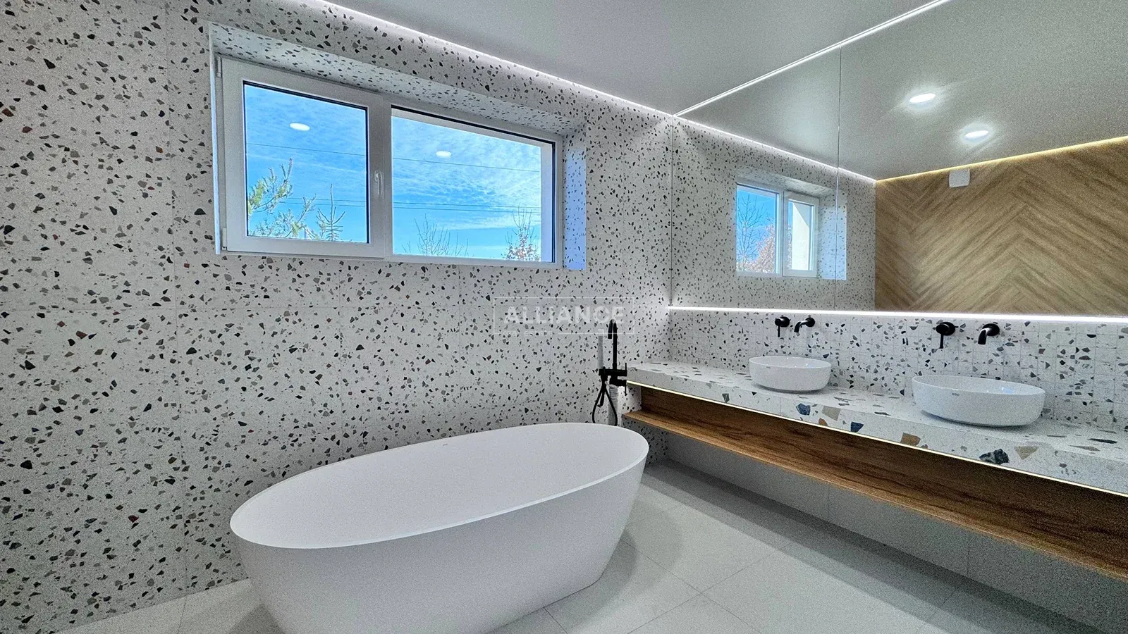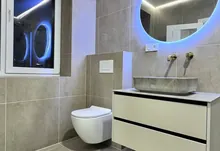 Також є просторий санвузол із ванною, інсталяцією та подвійним рукомийником. А ще гардеробна кімната