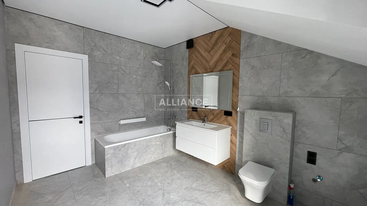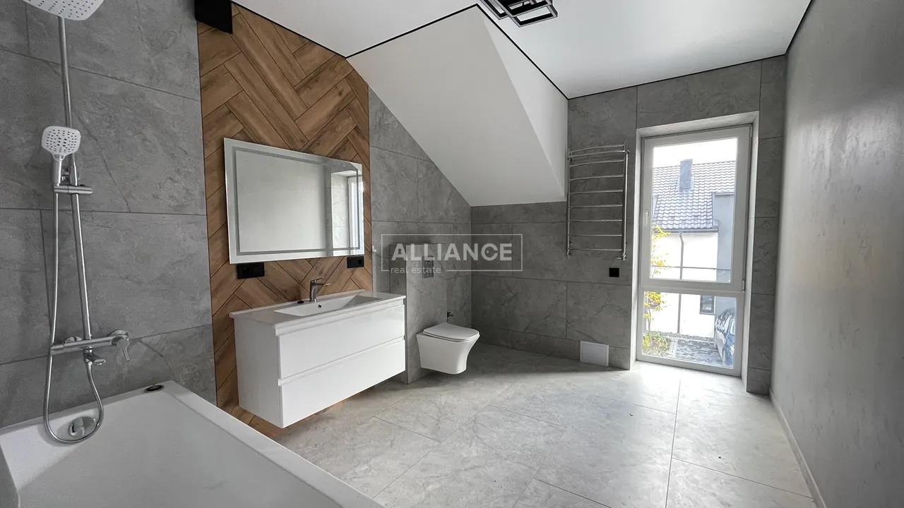 У будинку стильний та якісний ремонт у світлих тонах, санвузли повністю укомплектовані, а простір готовий до вашого індивідуального облаштування.