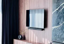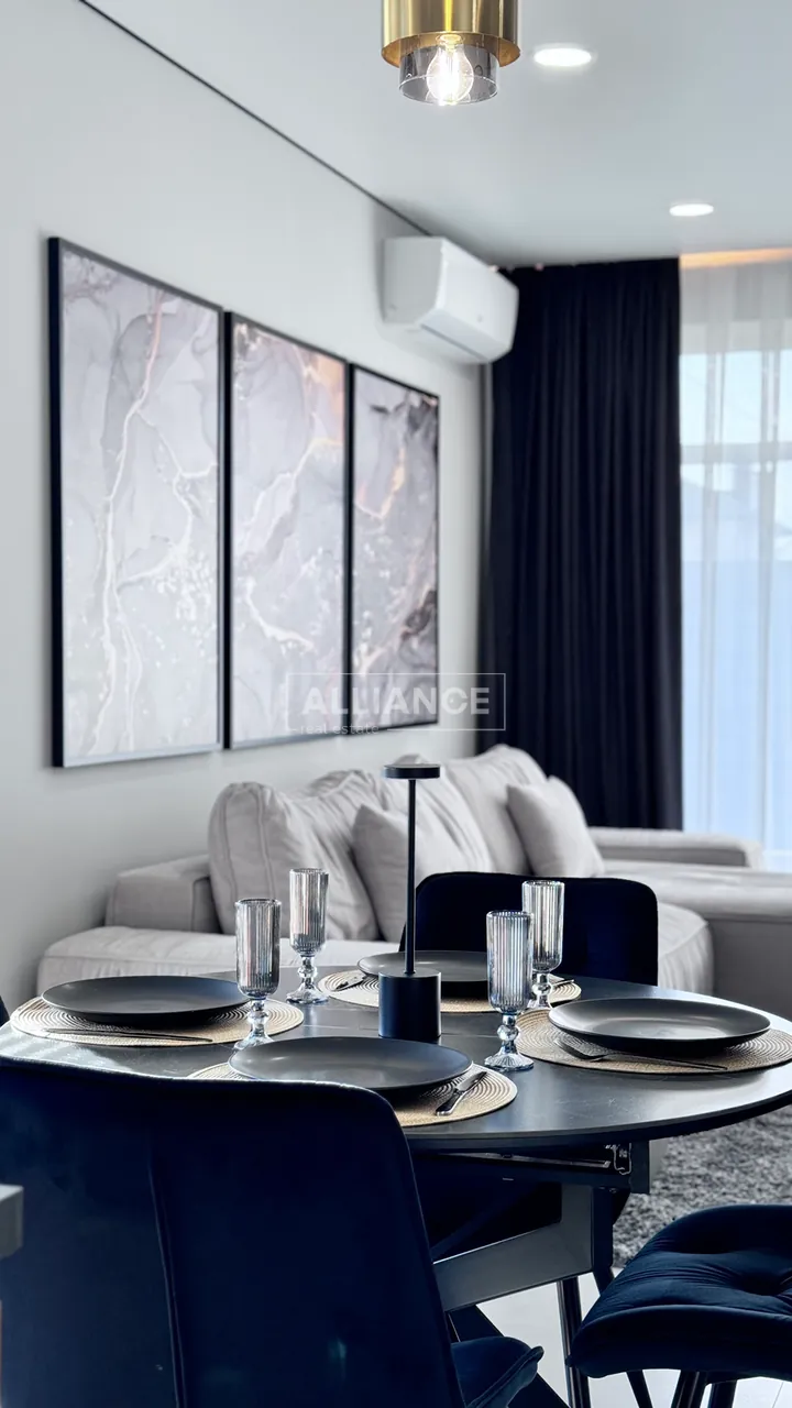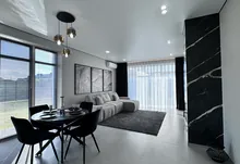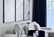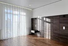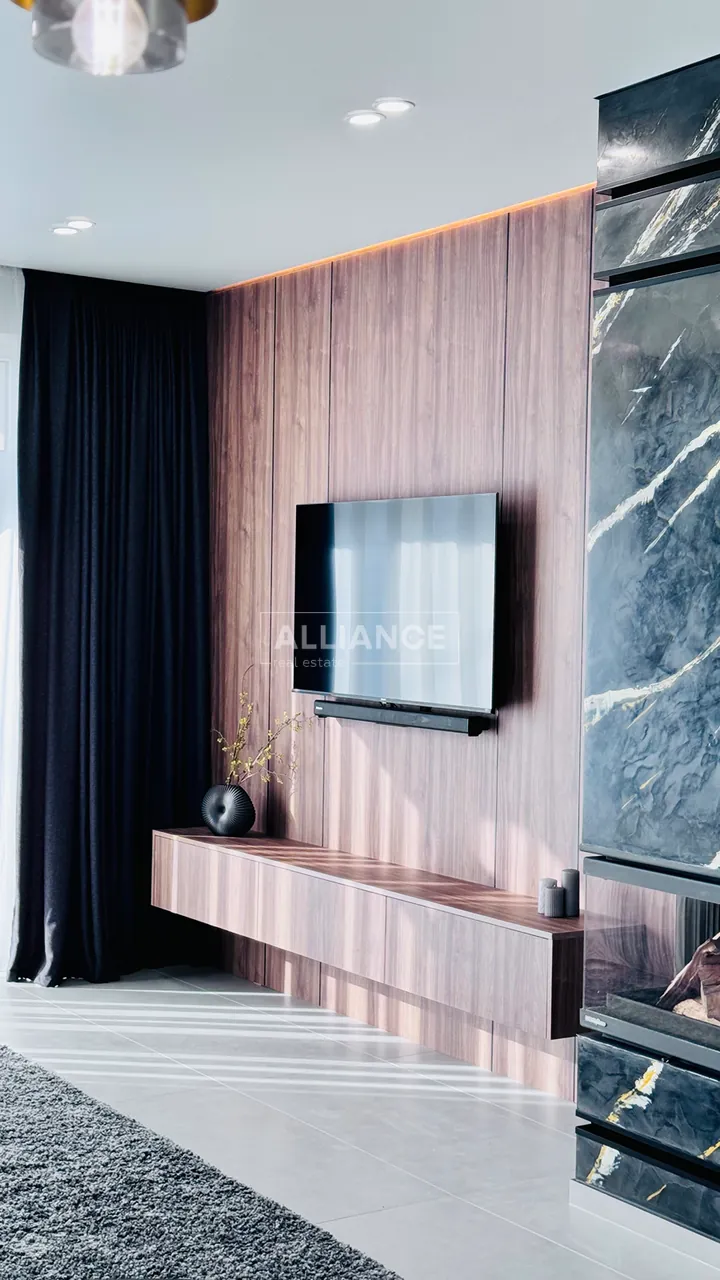 – Зона вітальні: дизайнерський диван , камін, зона TV, великі панорамні вікна