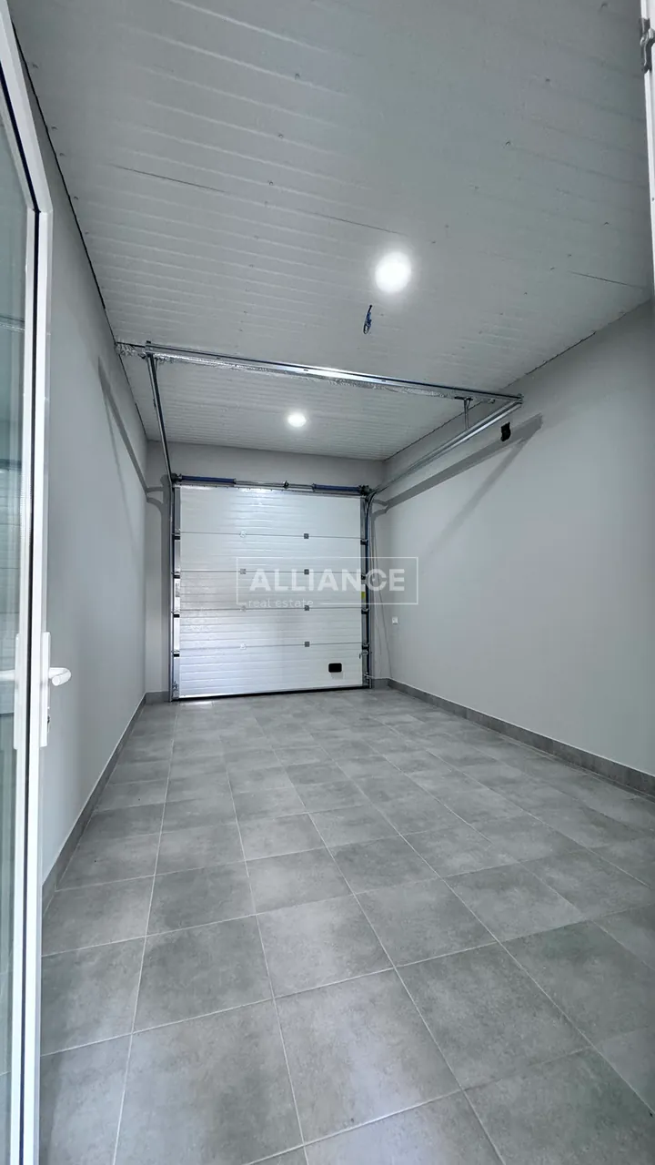 – Також на першому поверсі є гостьова спальня кімната, або ж кабінет та санвузол. Окремо з вулиці маємо просторий гараж з автоматичними воротами, та технічну кімнату паливната пральня.