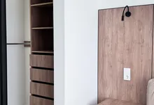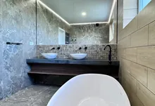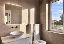 Також є просторий санвузол із ванною, інсталяцією та подвійним рукомийником. гардеробна кімната