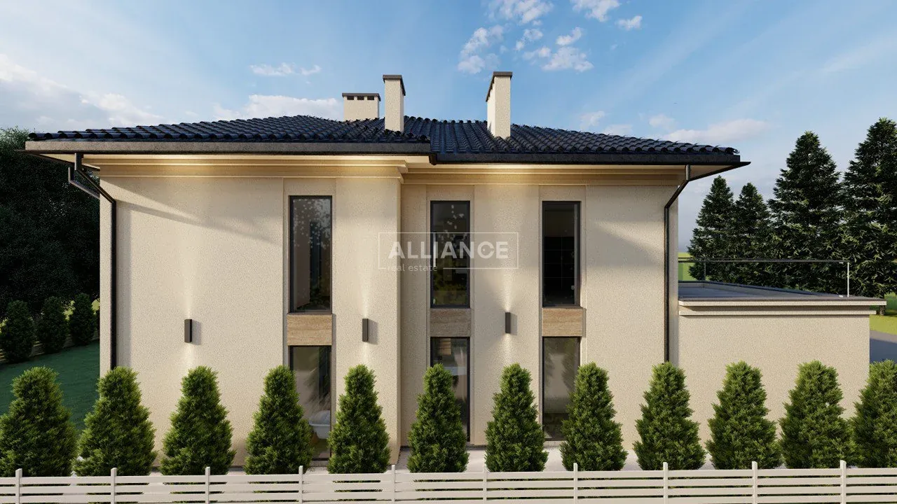 Простора вітальня 59,77 м² з виходом на терасу 16,67 м² – багато світла завдяки панорамним вікнам. Окрема кухня 10,96 м², яку при потребі можна обʼєднати з вітальнею. Є спальня 18,43 м² (зручно як гостьова або кабінет). Два санвузли. Технічне приміщення 3,17 м². Гараж 28,41 м² з входом у будинок – зручно в будь-яку погоду.