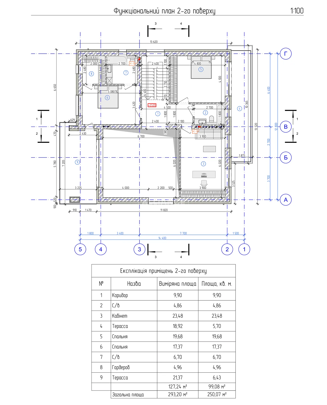 Загальна площа будинку — 250 м².