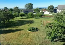 Територія огороджена, по периметру будинку наявні бруковані доріжки, насаджені плодові дерева та декоративні рослини.