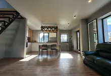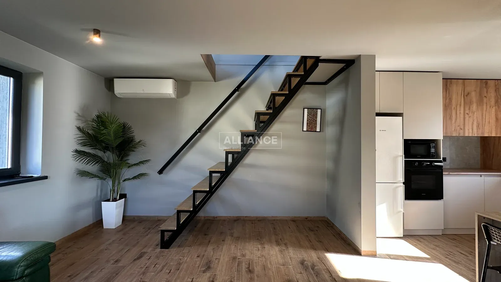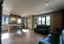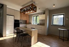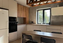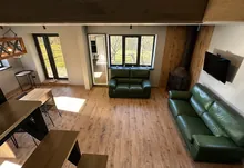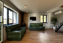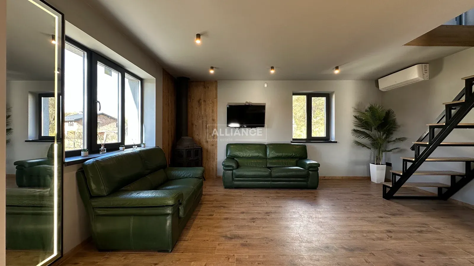 -1 поверх 35м. кухня вітальна, 2 шкіряних дивани (1 розкладний), телевізор 45 дюймів, твердопаливний камін з рукавом на другий поверх, кондиціонер до -20, посудомийна машина, індукційна плита, духова шафа, мікрохвильова піч, витяжка, холодильник, також встановимо нову кухню.
