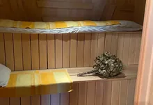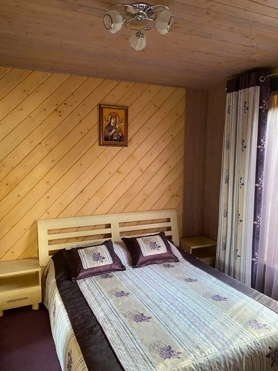 У гостьовому будинку є кухня, вітальня з каміном, спальна кімната, комора, санвузол та сауна з відпочинковою зоною.