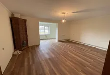 – Підлога: основа з глини, щебеню, сухої стяжки, утеплення (пінопласт), ОСБ-плита, пароізоляція і ламінат