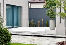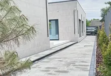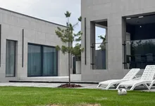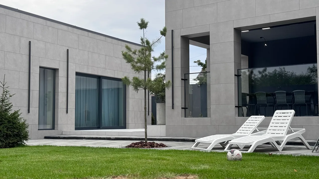 Фасад із керамограніту, експлуатований дах, завдяки чому будинок має унікальний вигляд.