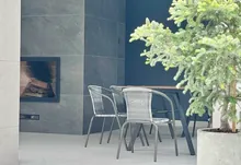 Куток для відпочинку мурована в стилі будинку альтанка з мангальною та каміном