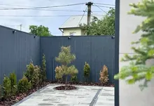 Паркан з вуличним освітленням, автоматичною брамою та підсобним приміщенням,