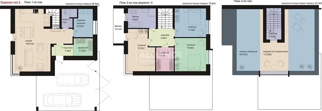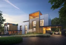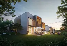 - Раціональне планування – два поверхи + експлуатований дах із накритою терасою