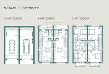 Будинки спроєктовані в єдиному стилі, мають зручне планування. Кожен будинок вміщує 3 кімнати, просторий гараж, ґанок і тераси, та має загальну площу понад 100 кв. м.
