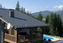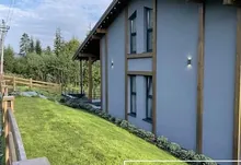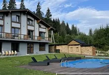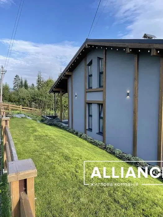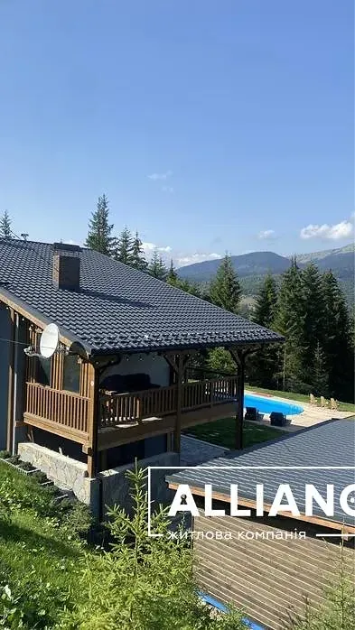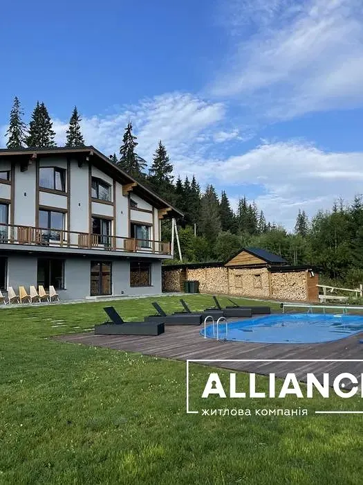 Продається діючий готетельний бізнес,розташований в с.Поляниця Івано-Франківської Обл. Будівля збудована в період з 2019 по 2021 р і введена в експлуатацію з 2022р. Котедж знаходиться поруч з курортом Буковель. Земельна ділянка площею 15сот межує з лісом і дає чудовий панорамний огляд на гори Хом‘як та Синяк. Площа ділянки може бути збільшена за рахунок купівлі прилеглих територій. Будівля 388 м2 виконана в стилі шале з оригінальною архітектурою і дизайном помешкань. Котедж містить 6 спалень з ванними кімнатами, відпочинкову залу з каміном, терасу з диванами, спільну кухню, зону барбек‘ю,кімнату обслуговуючого персоналу та господарські приміщення. На території обладнано відпочинкові зони:басейн з підігрівом,дитячу ігрову площадку. В окремій будівлі розміщується лазня і чан на дровах. Комплекс забезпечений усіма комунікаціями: свердловиною , власною трансформаторною підстанцією, генератор та біосептик. В котеджі створені комфортні умови проживання і відпочинку відвідувачам.