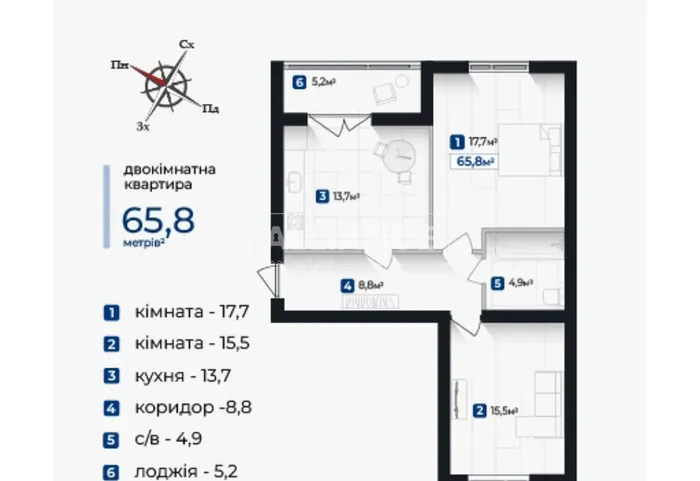 Продаж 2к квартири з гарним плануванням та видом у ЖК Княгинин