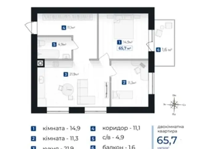 Продаж 2к квартири з класним плануванням в закритому ЖК Козацький