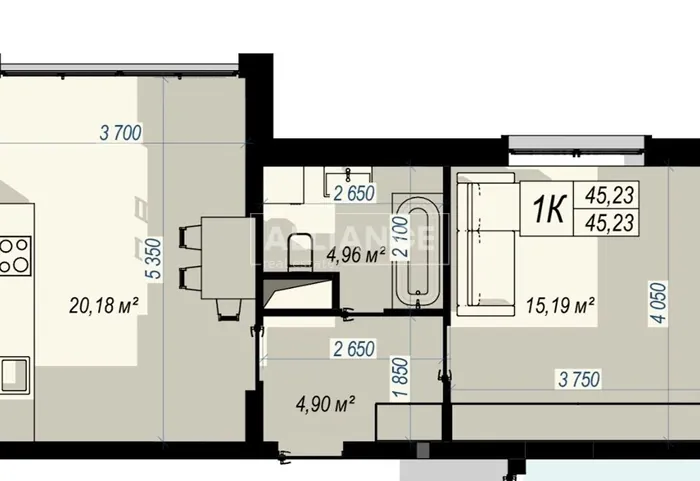 Продається велика 1-кімнатна квартира кухня-студія.