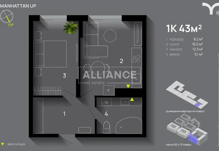 Видова однокімнатна квартира в ЖК Manhattan UP