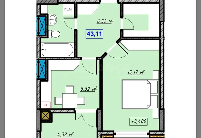 43.11м²