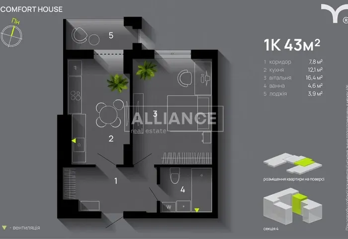 Зданий сирець, 1-к кв. 43м2 в ЖК Comfort House