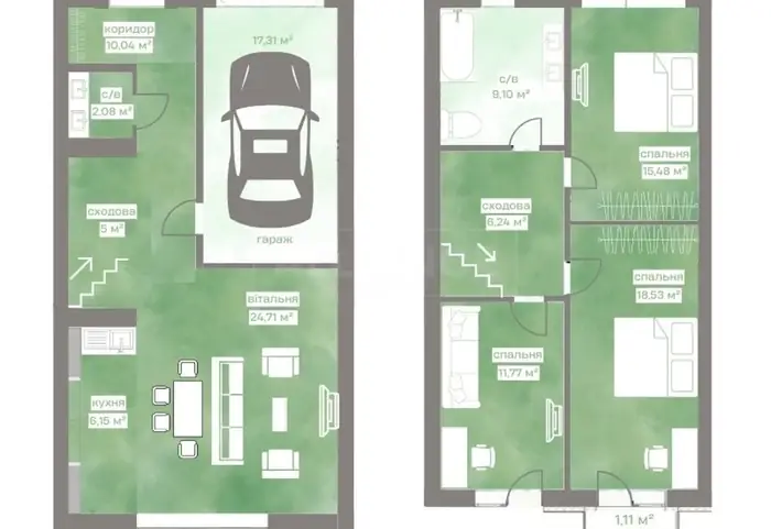 Таунхаус з гаражем та площею 140 м2 неподалік від міста