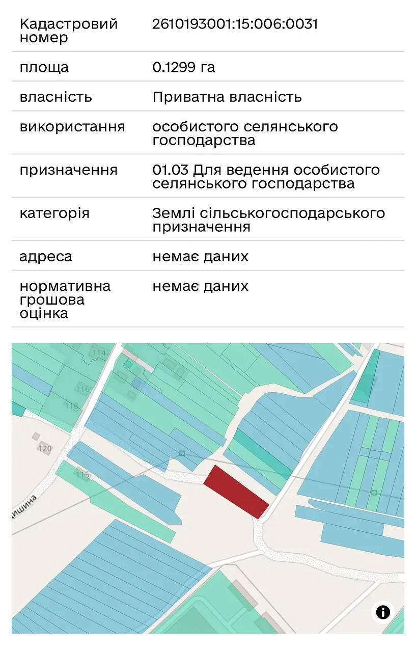 Призначення «Для ведення особистого селянського господарства», але можливо буде переробити «для будівництва і обслуговування житлового будинку, господарських будівель та споруд».