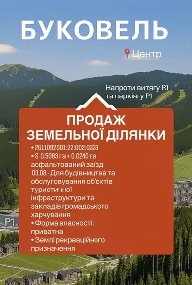 Продаж елітної земельної ділянки в самому серці Карпат — Буковель Центр
